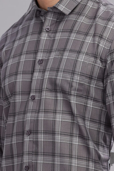 Men’s Yard-Dyed Grey Checked Long Sleeve Shirt