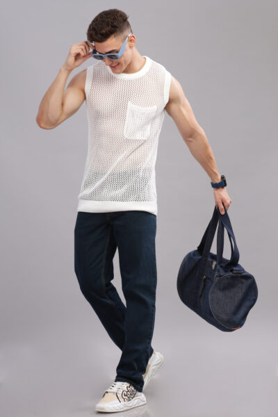 Men’s Washed Dark Blue Denim Pant with Leather Patch Detail