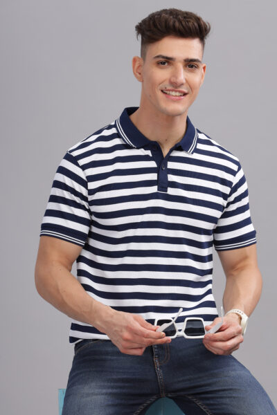 Men’s Yarn-Dyed Striped Polo T-Shirt with Contrast Tipping