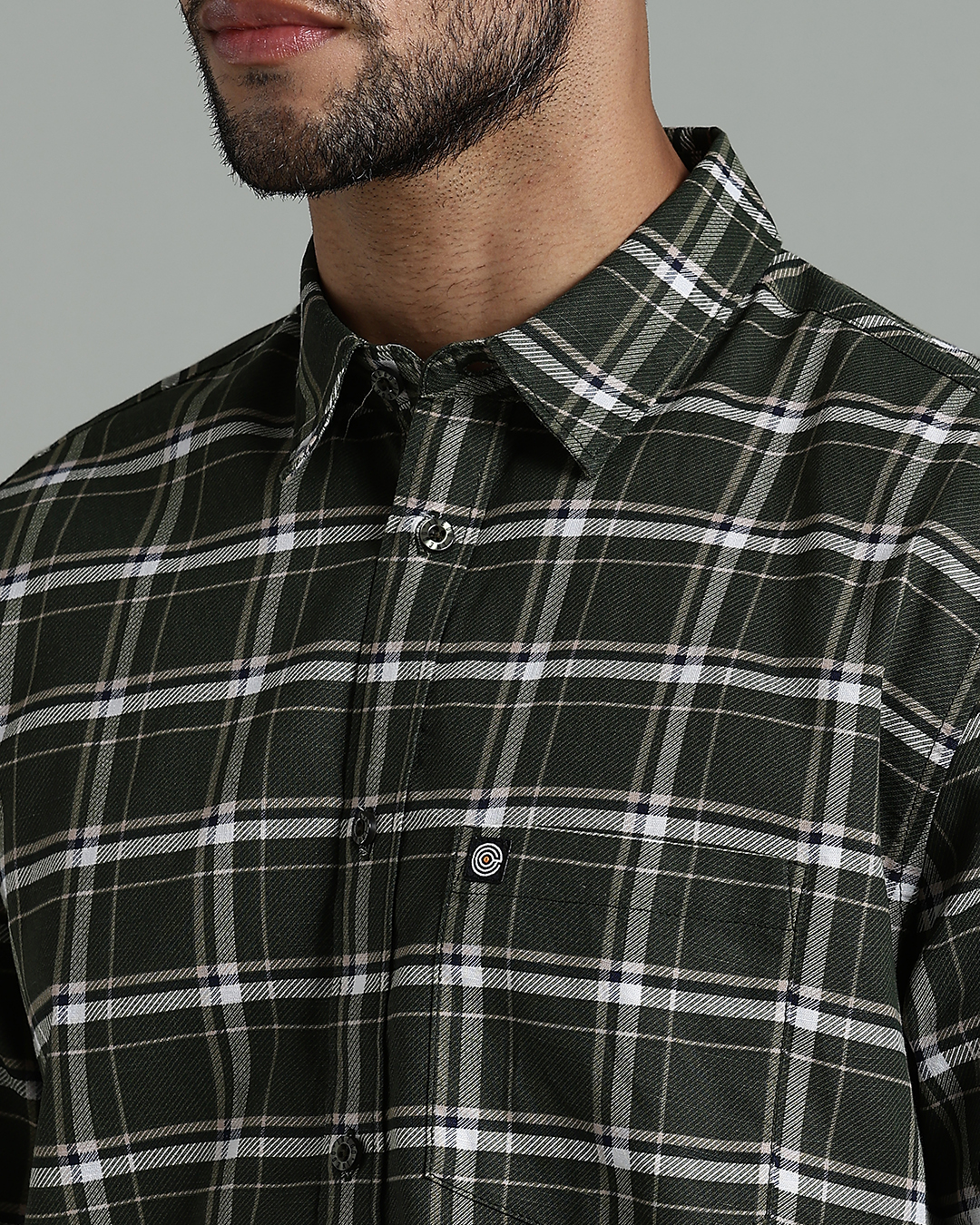 Men’s 100% Cotton Checked Long Sleeve Shirt with Logo Detail – Green