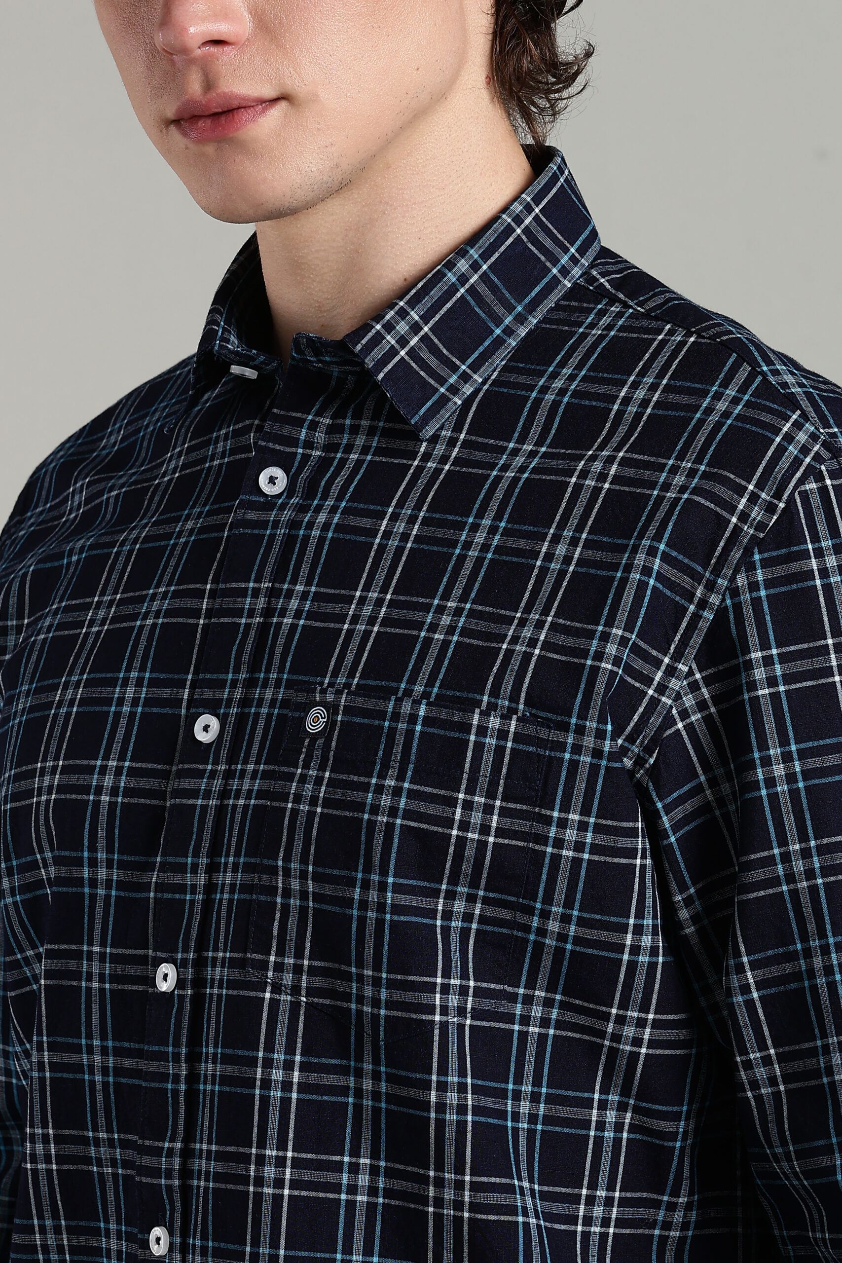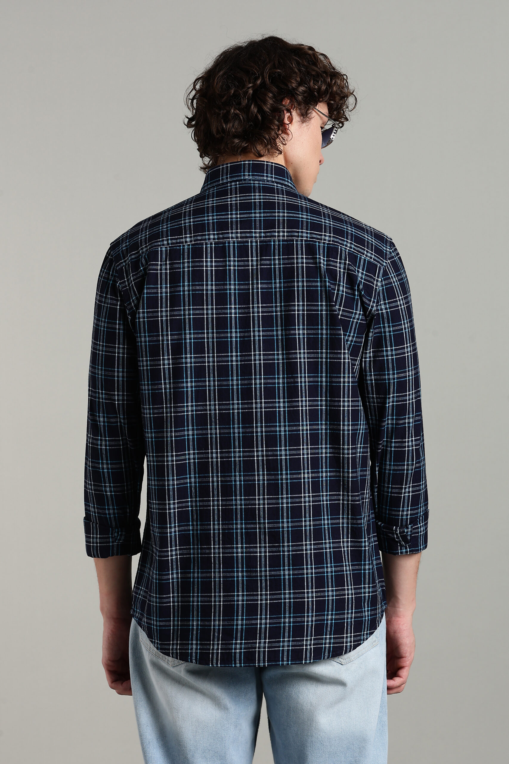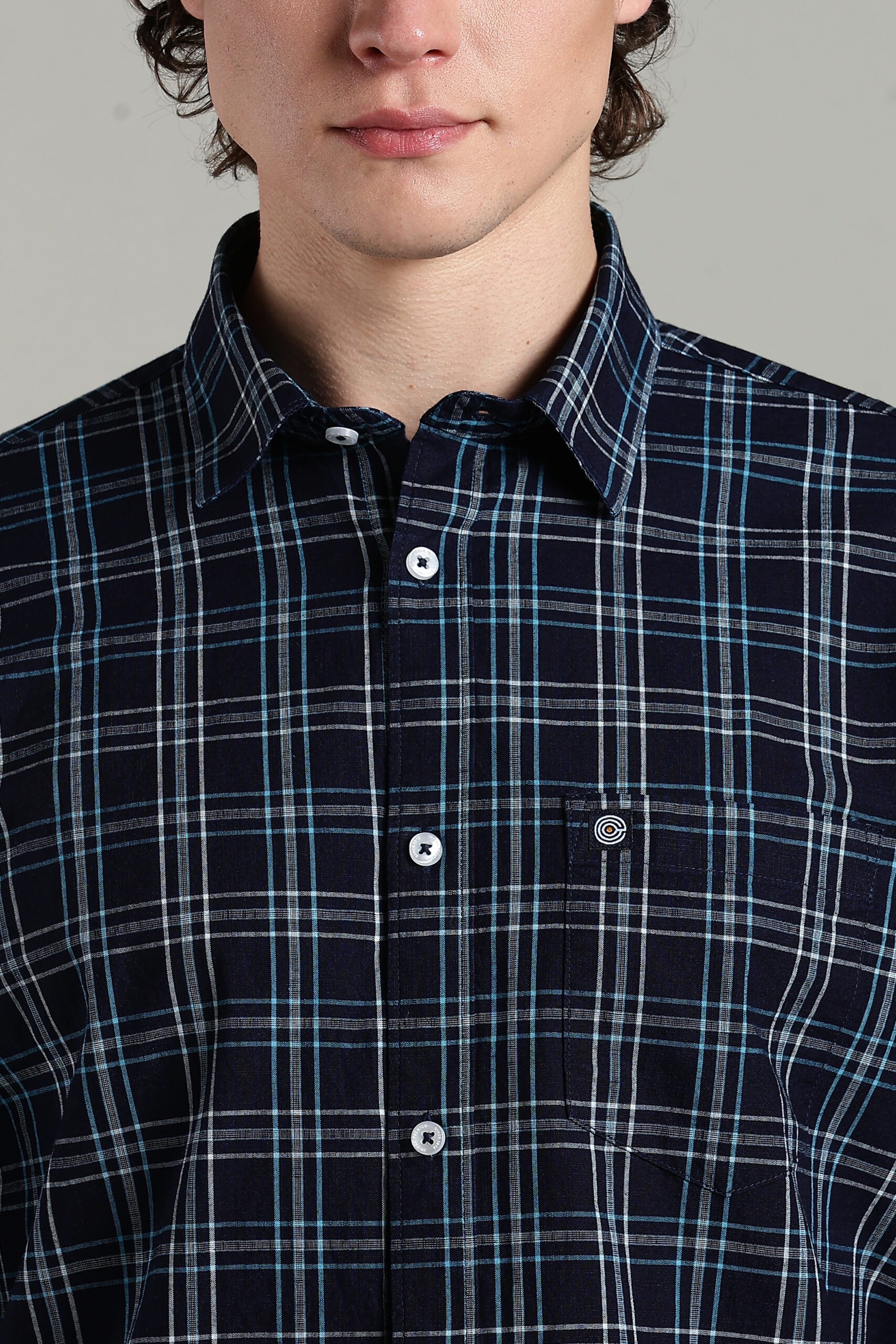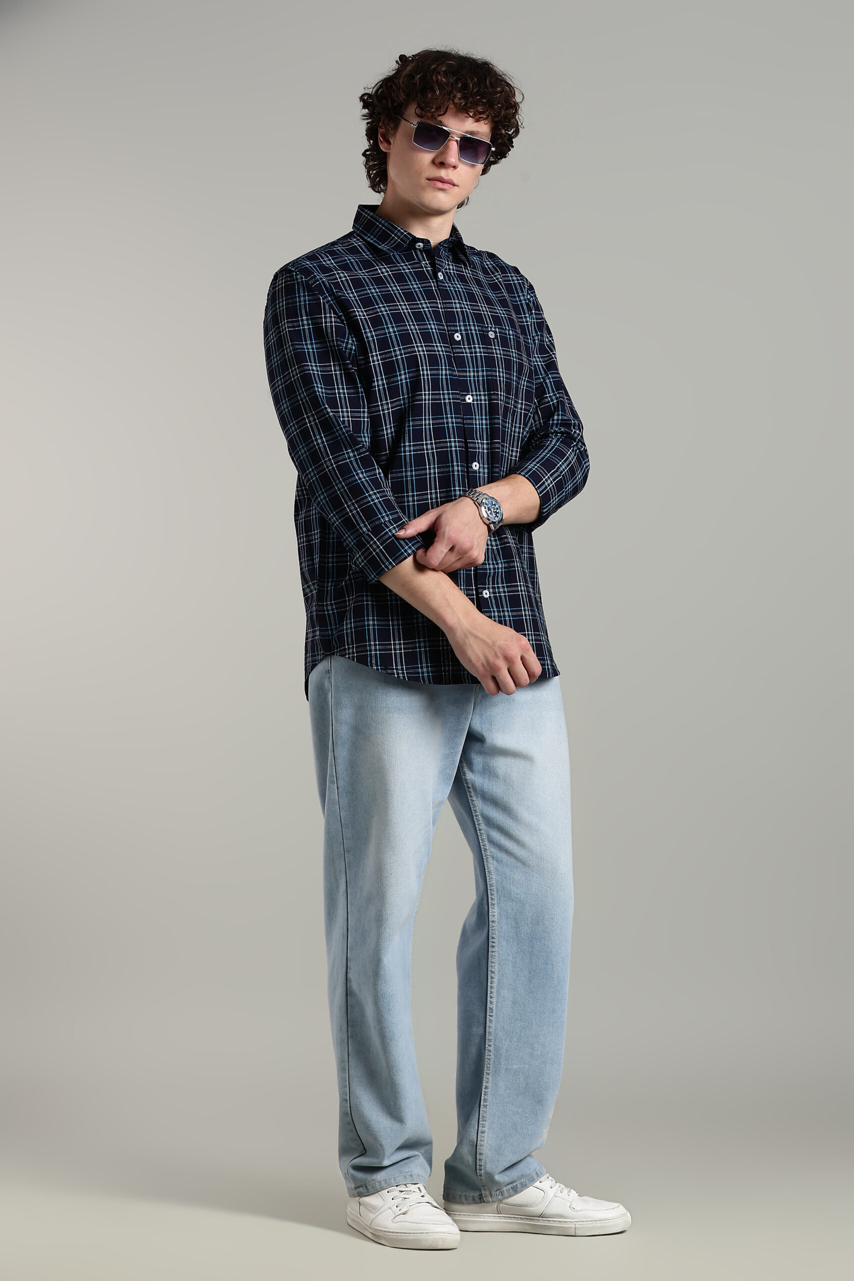 Men’s 100% Cotton Indigo Checked Long Sleeve Shirt – Regular Fit