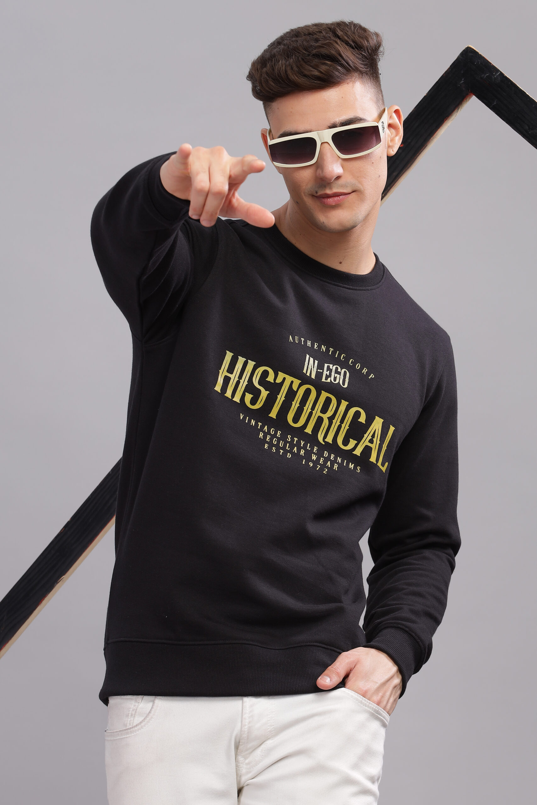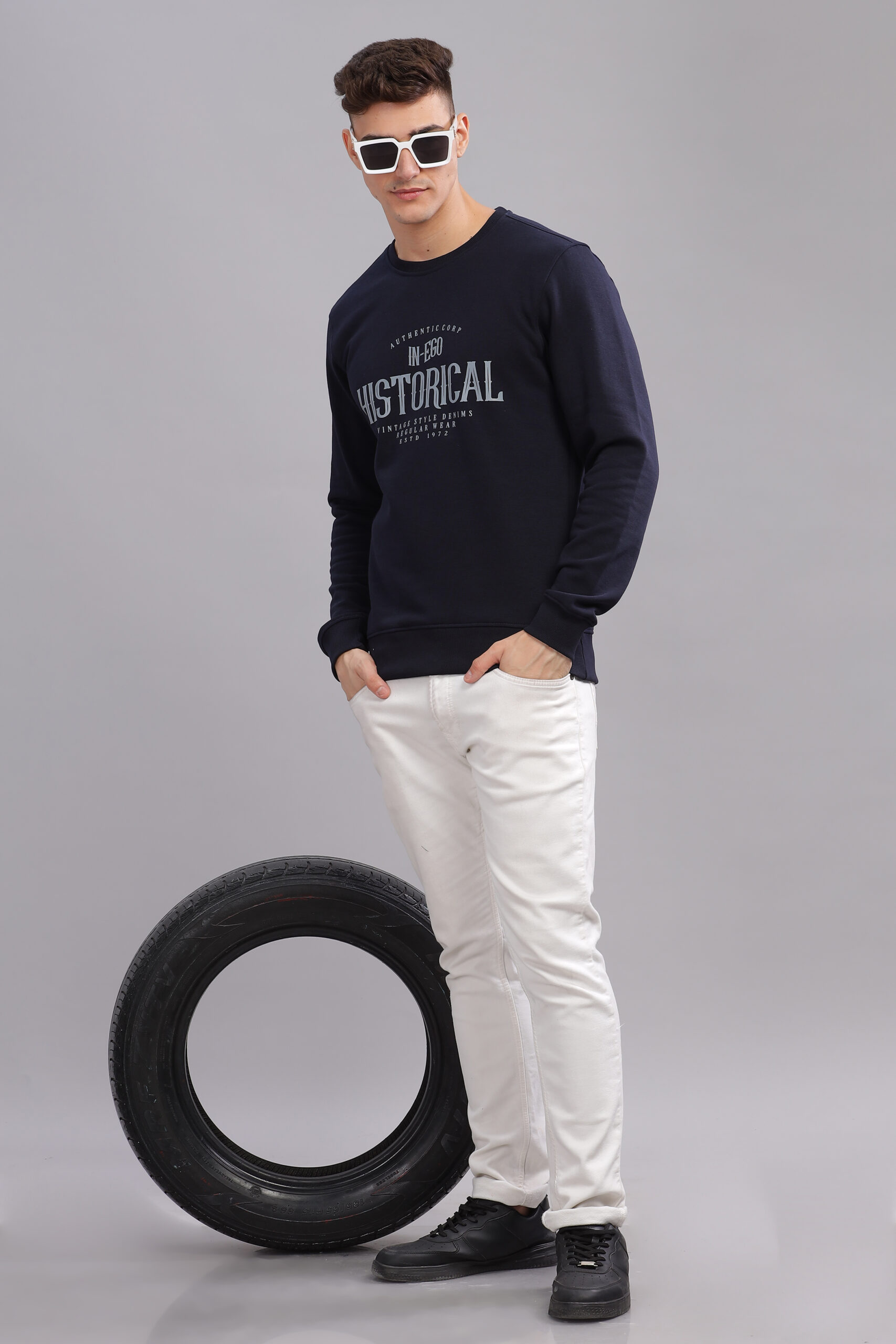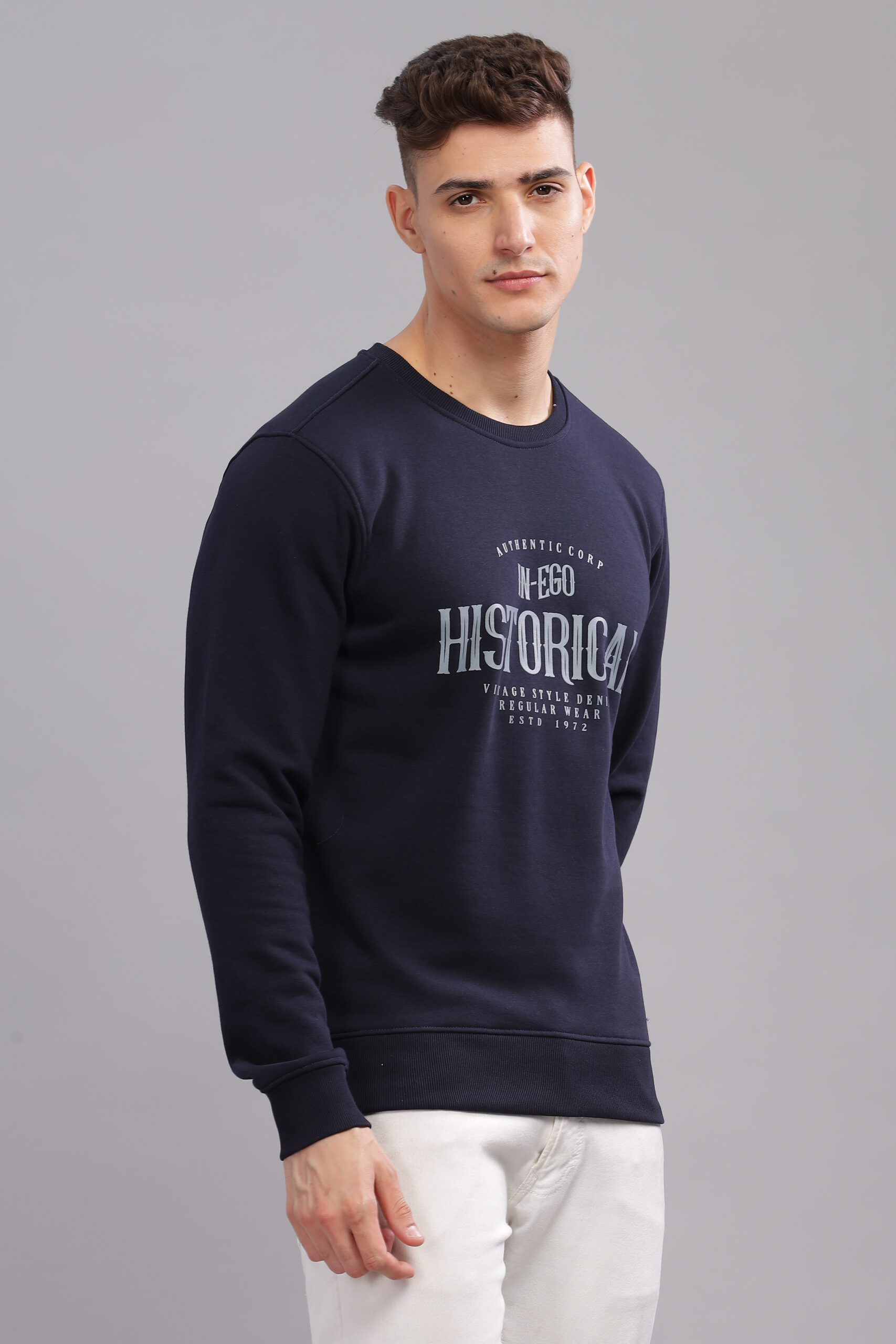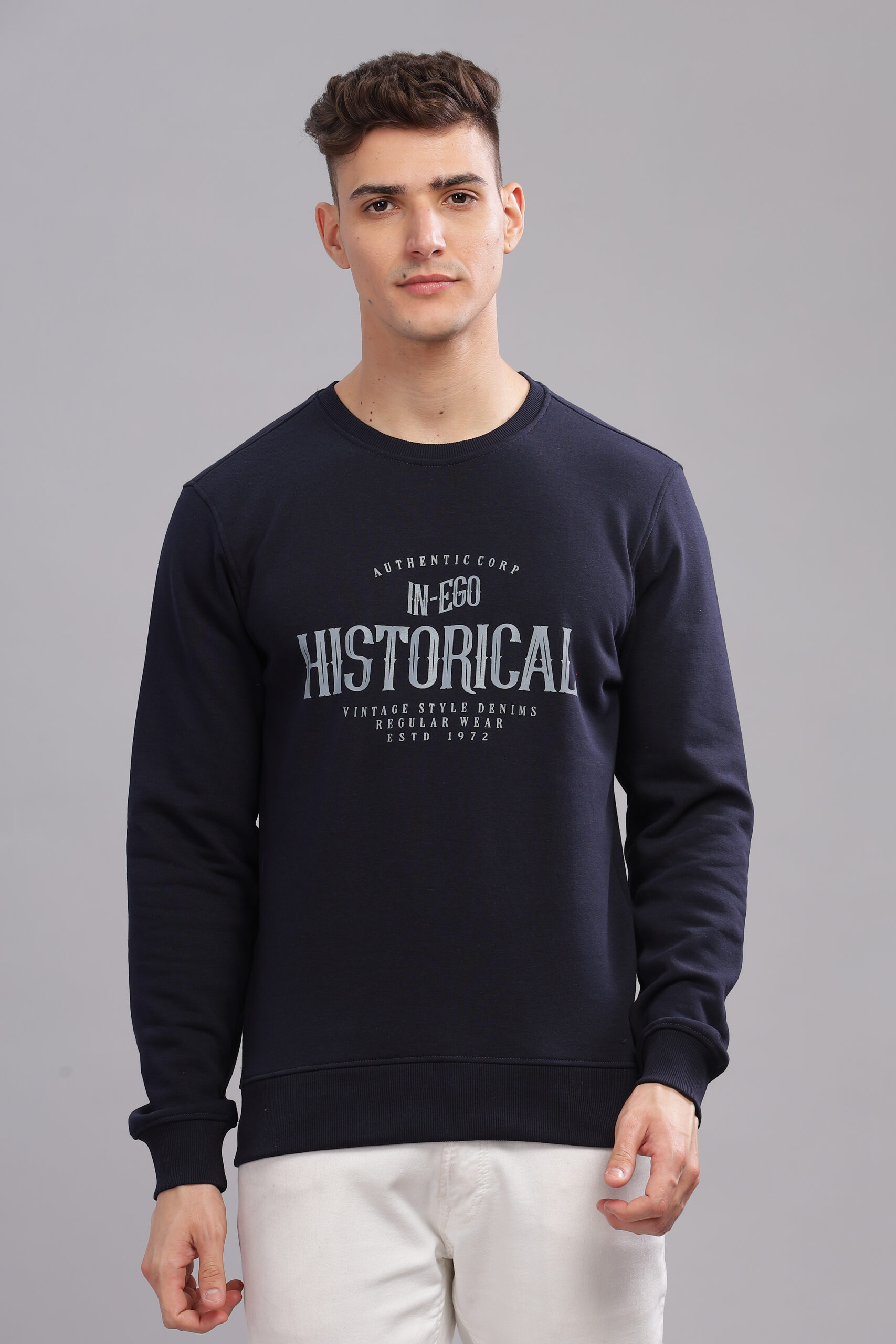 Men’s Cotton-Rich Graphic Sweatshirt – Deep Navy & Black Clay