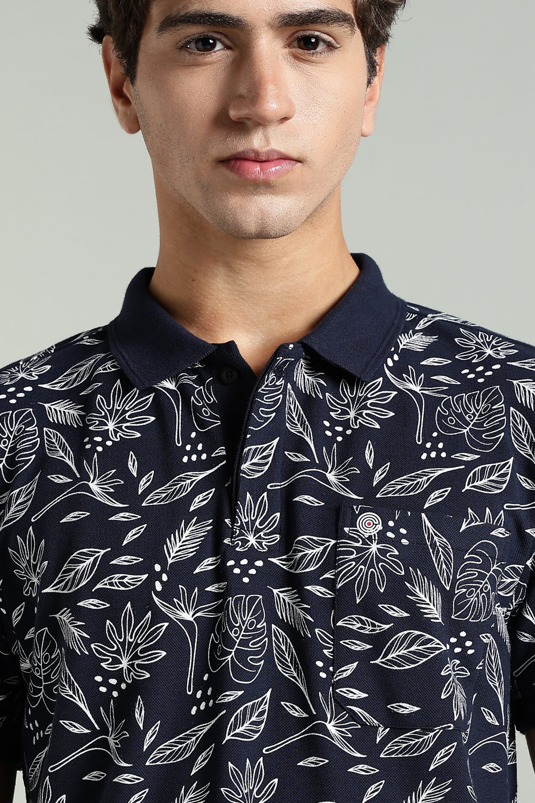 Men’s Cotton-Rich Pique AOP Polo T-Shirt with Leaf Print & HD Pocket Logo