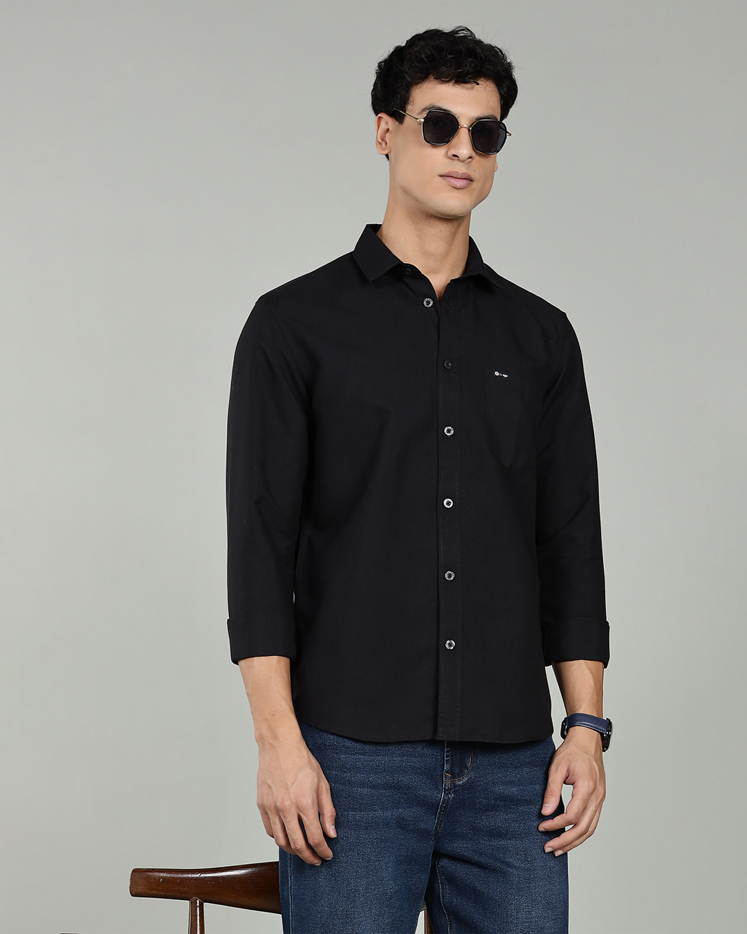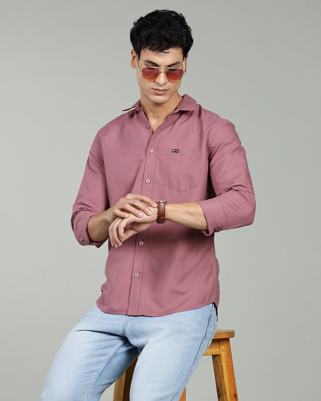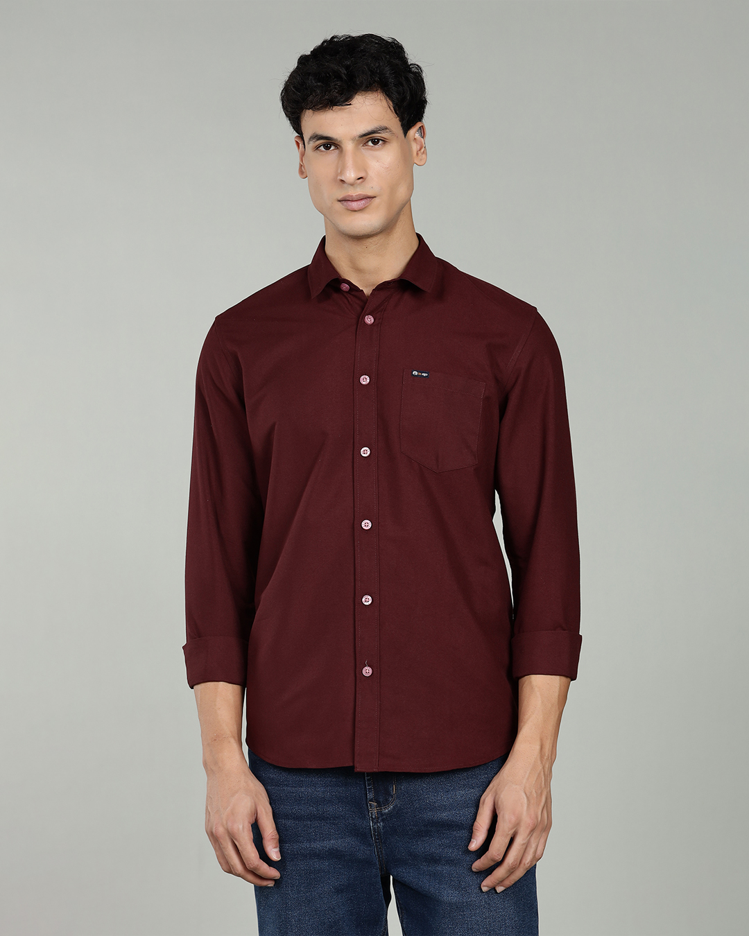 Men’s Cotton-Rich Poplin Solid Long Sleeve Shirt – Lilac, Black & Maroon