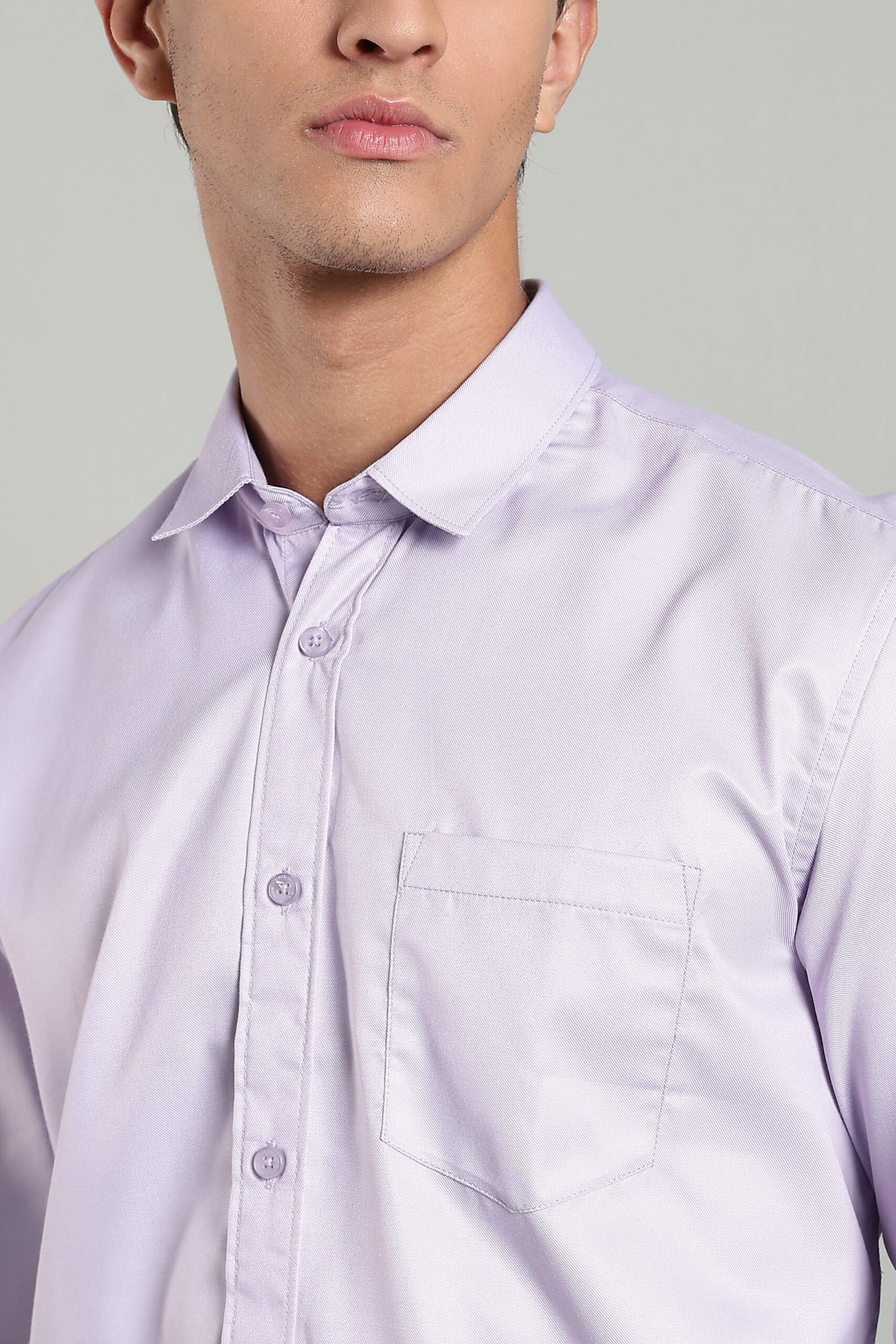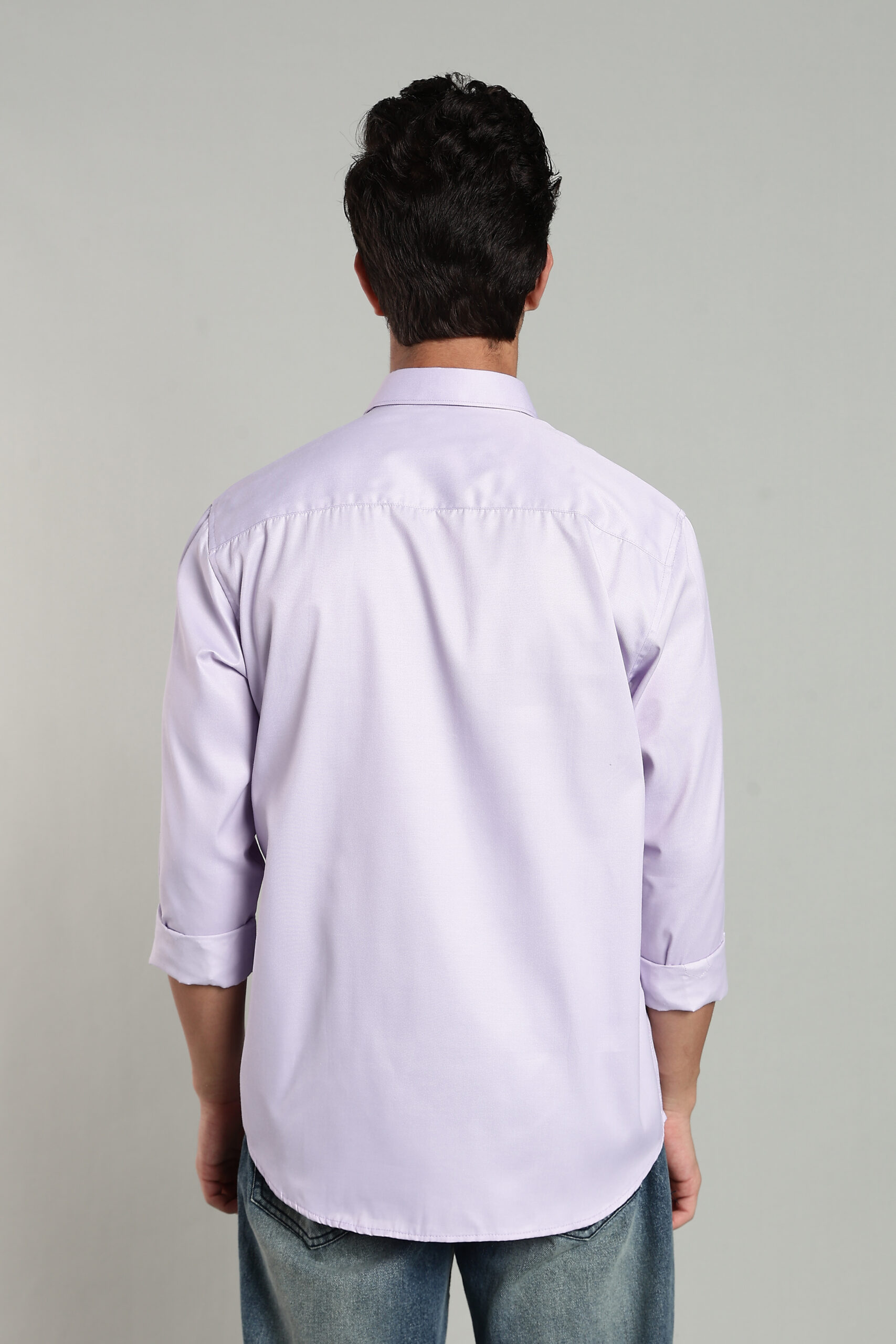 Men’s Cotton-Rich Twill Solid Long Sleeve Shirt – Violet & Beige