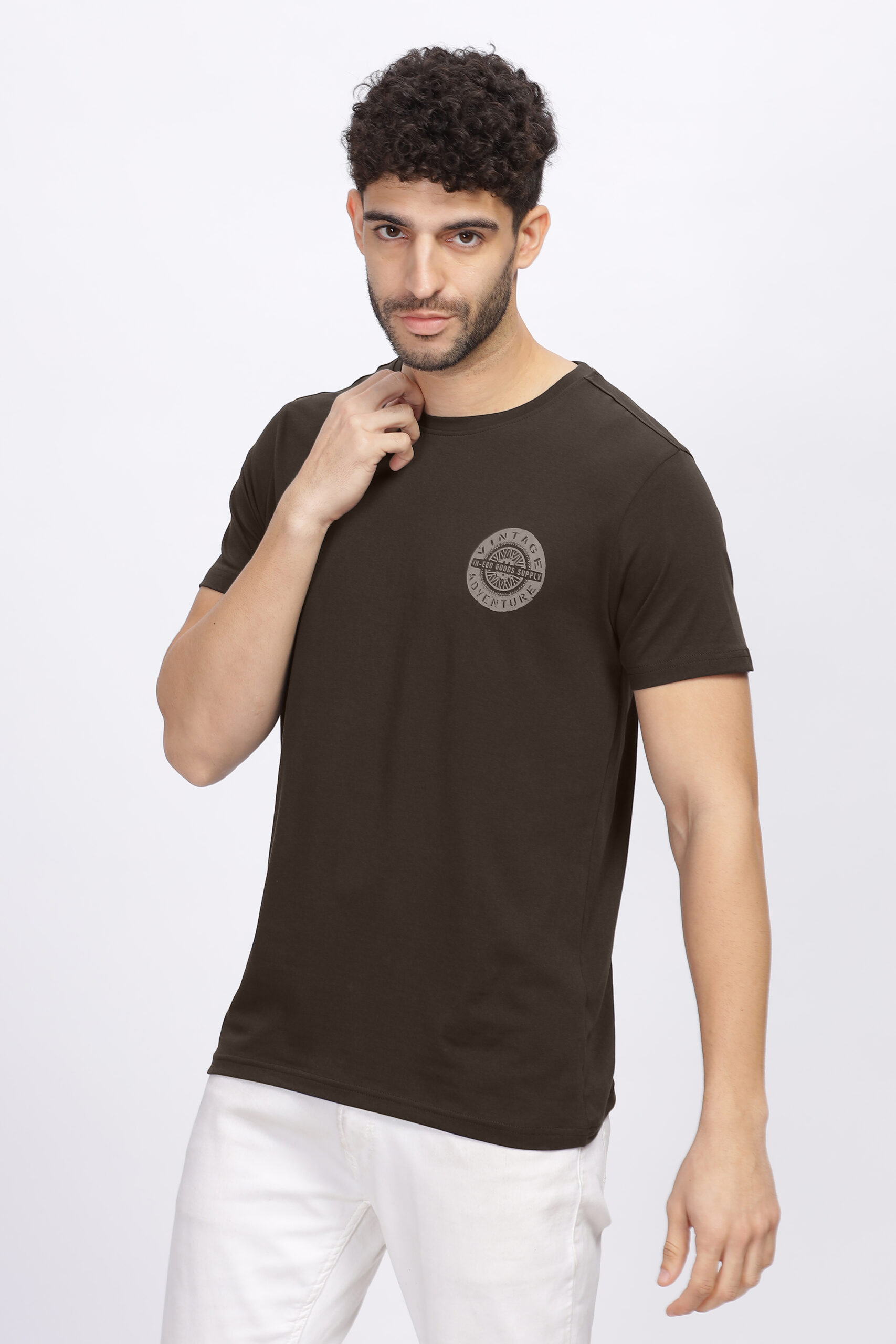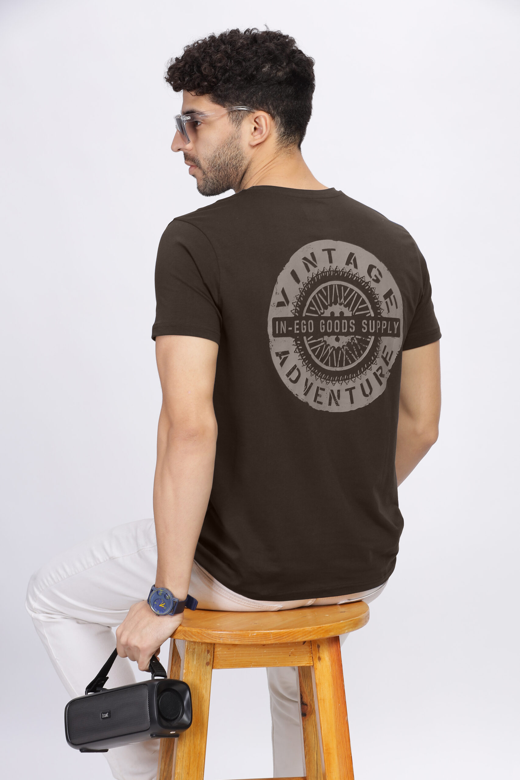 Men’s Cotton-Rich Printed Round Neck T-Shirt with HD Chest & Back Print – Black & Sea Shell