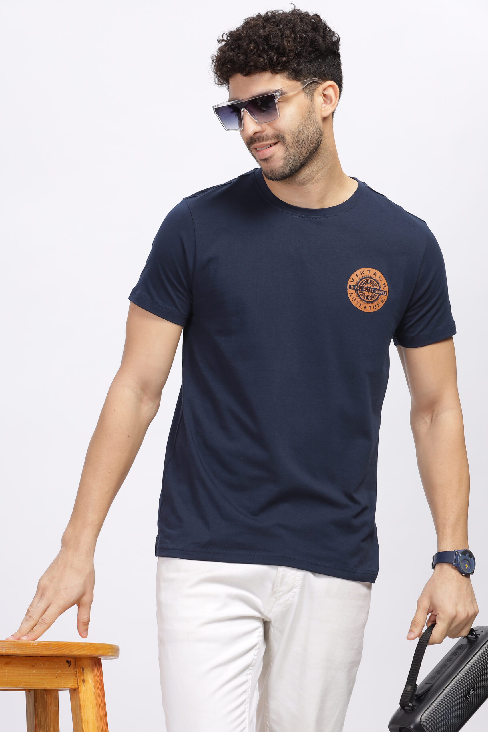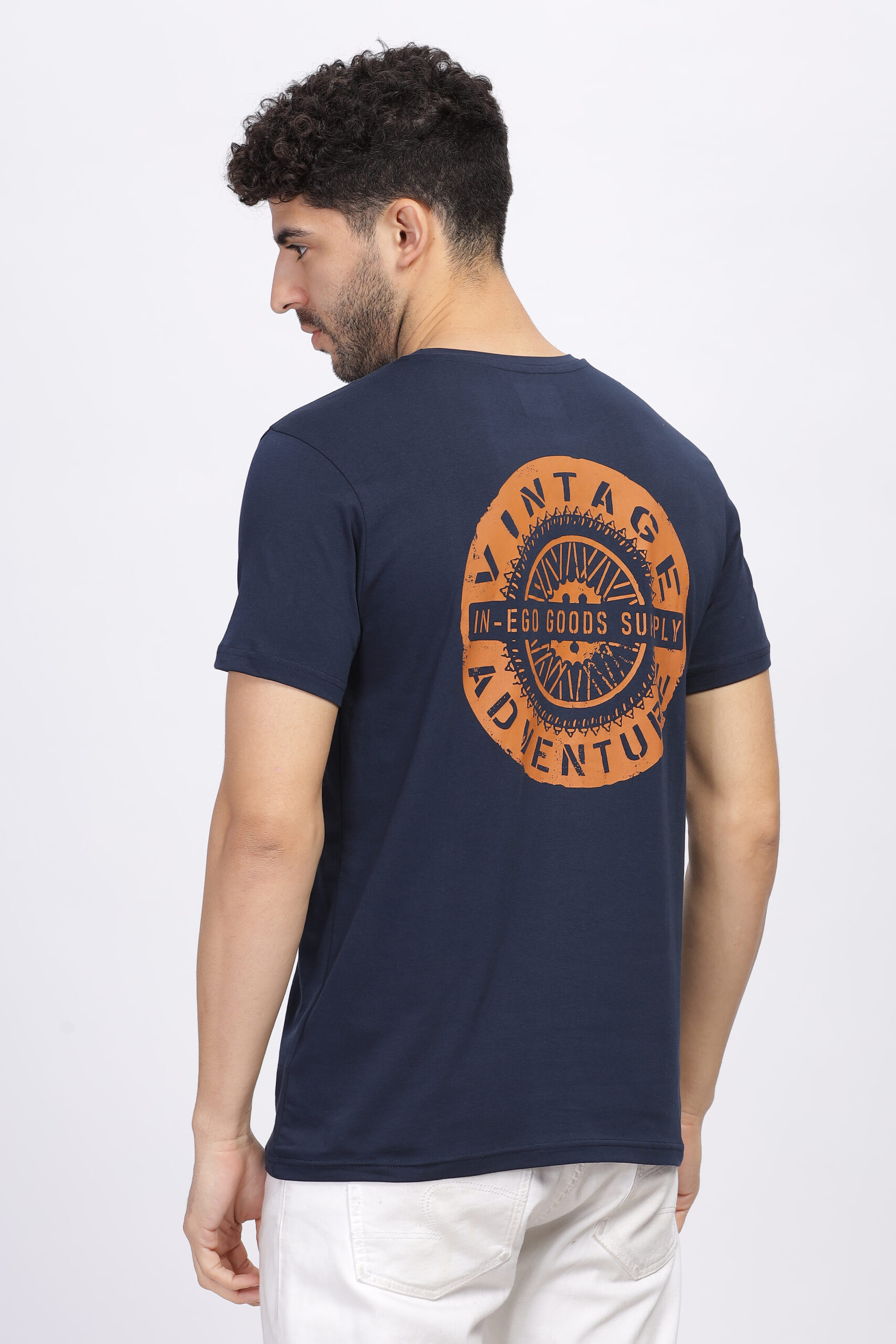 Men’s Dual Graphic Cotton-Lycra Round Neck T-Shirt