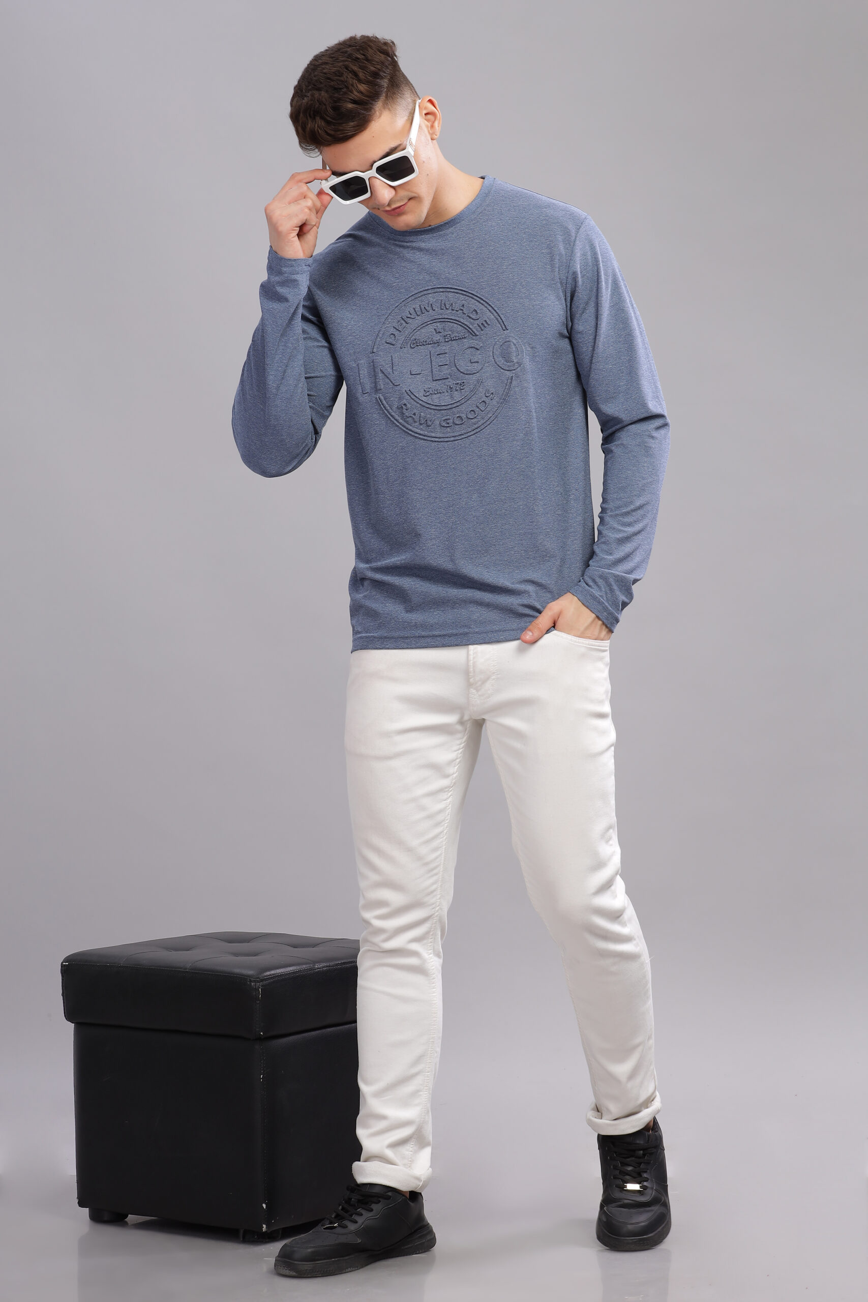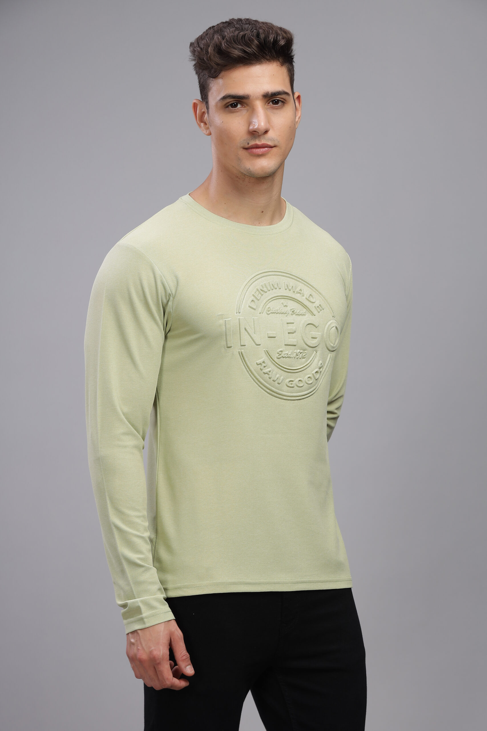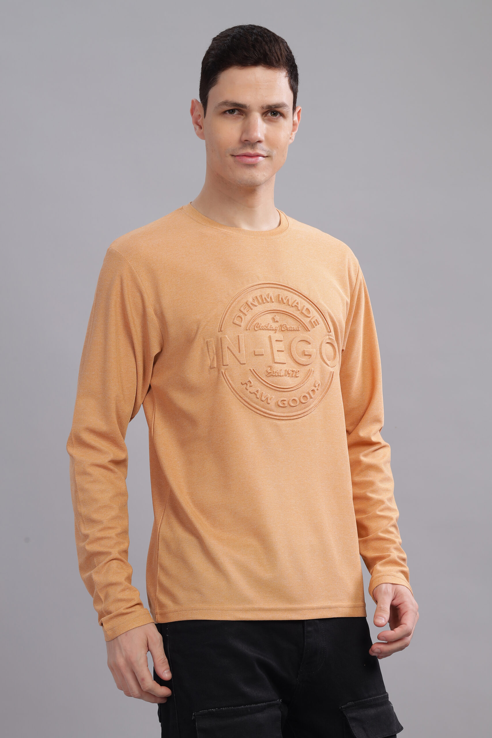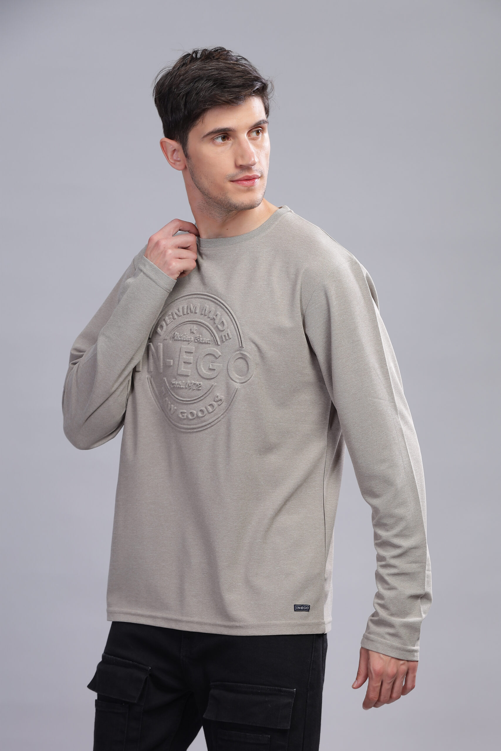 Be the first to review “Men’s Melange Long Sleeve Tee with Embossed Chest Print – Multi-Colour Edition”