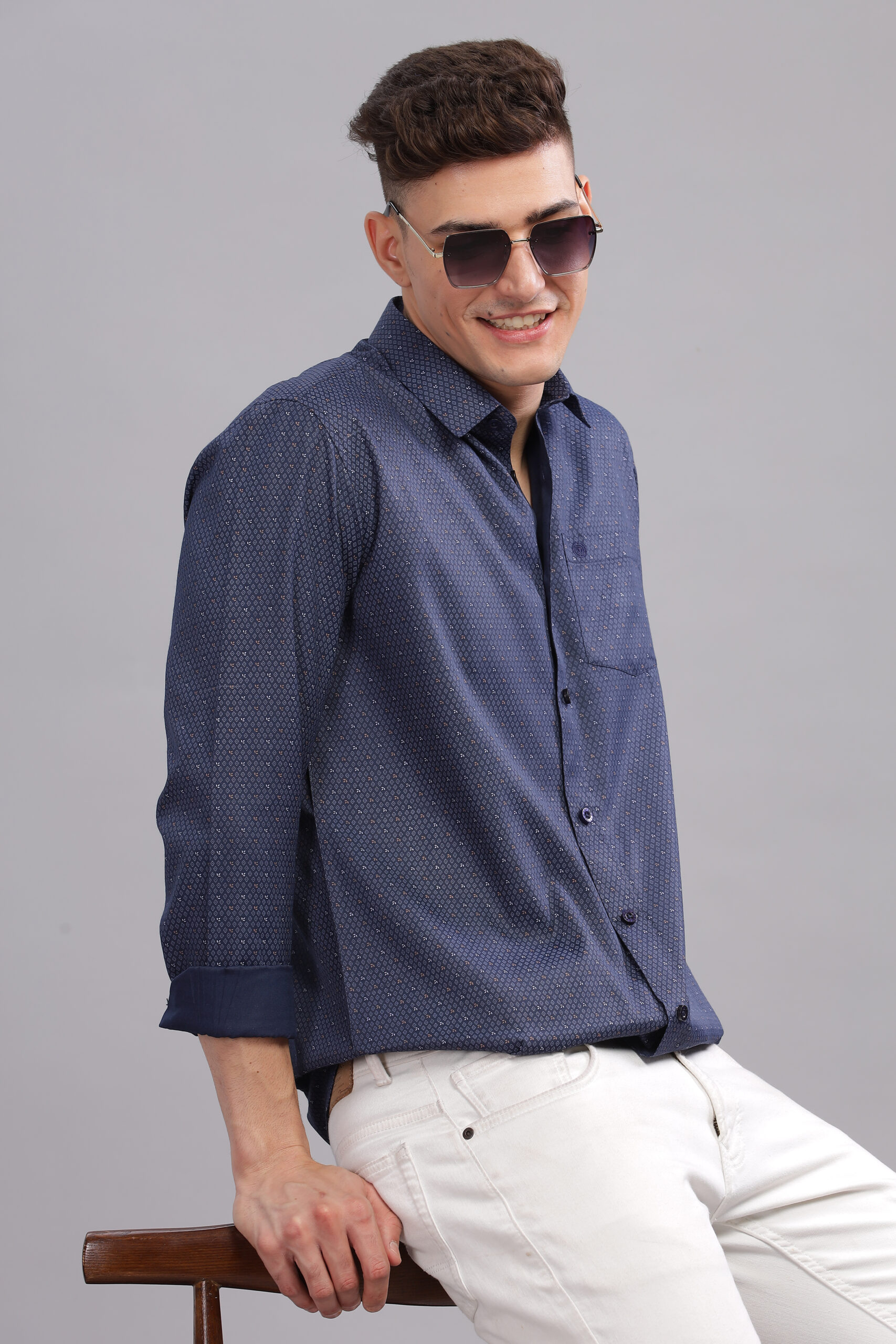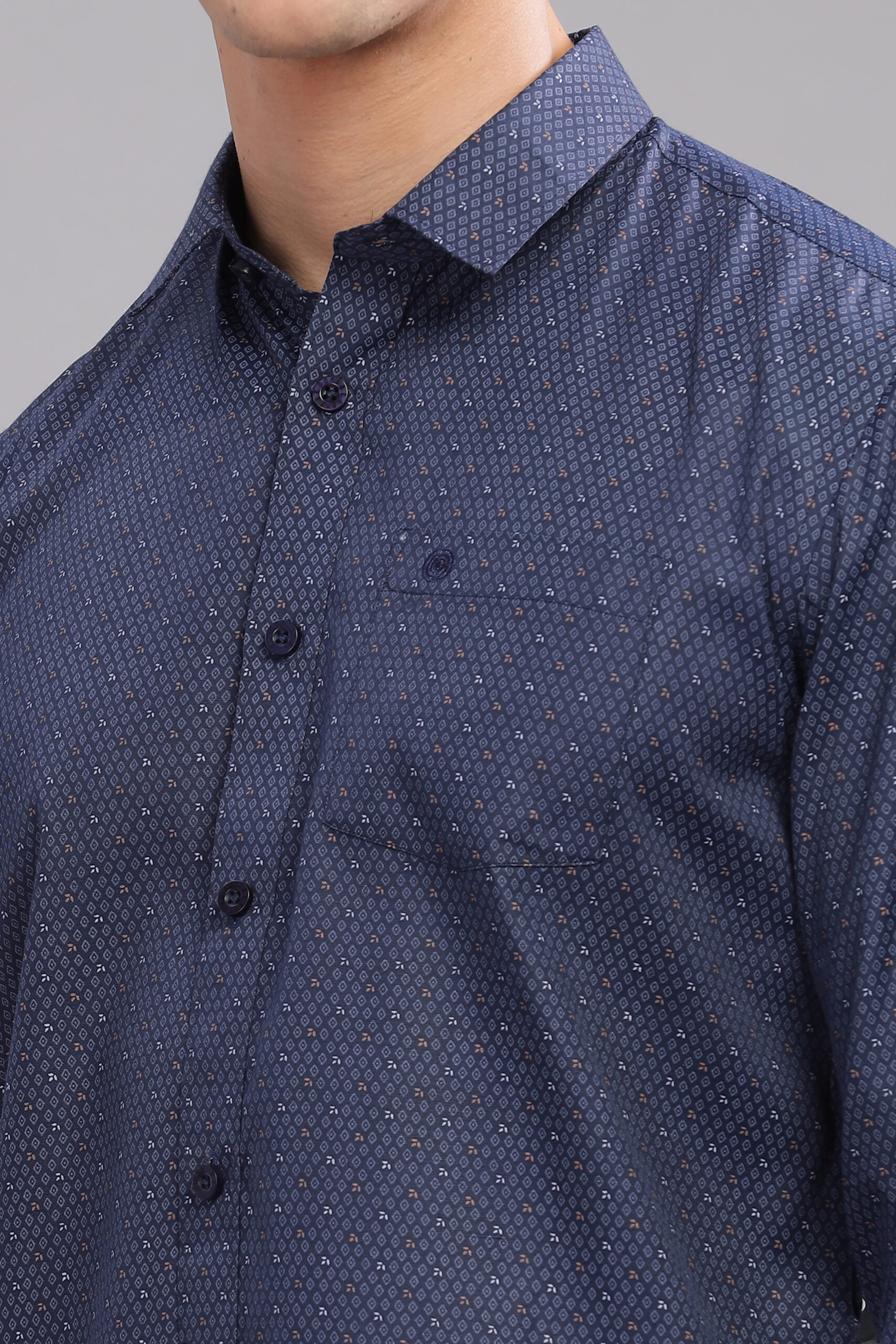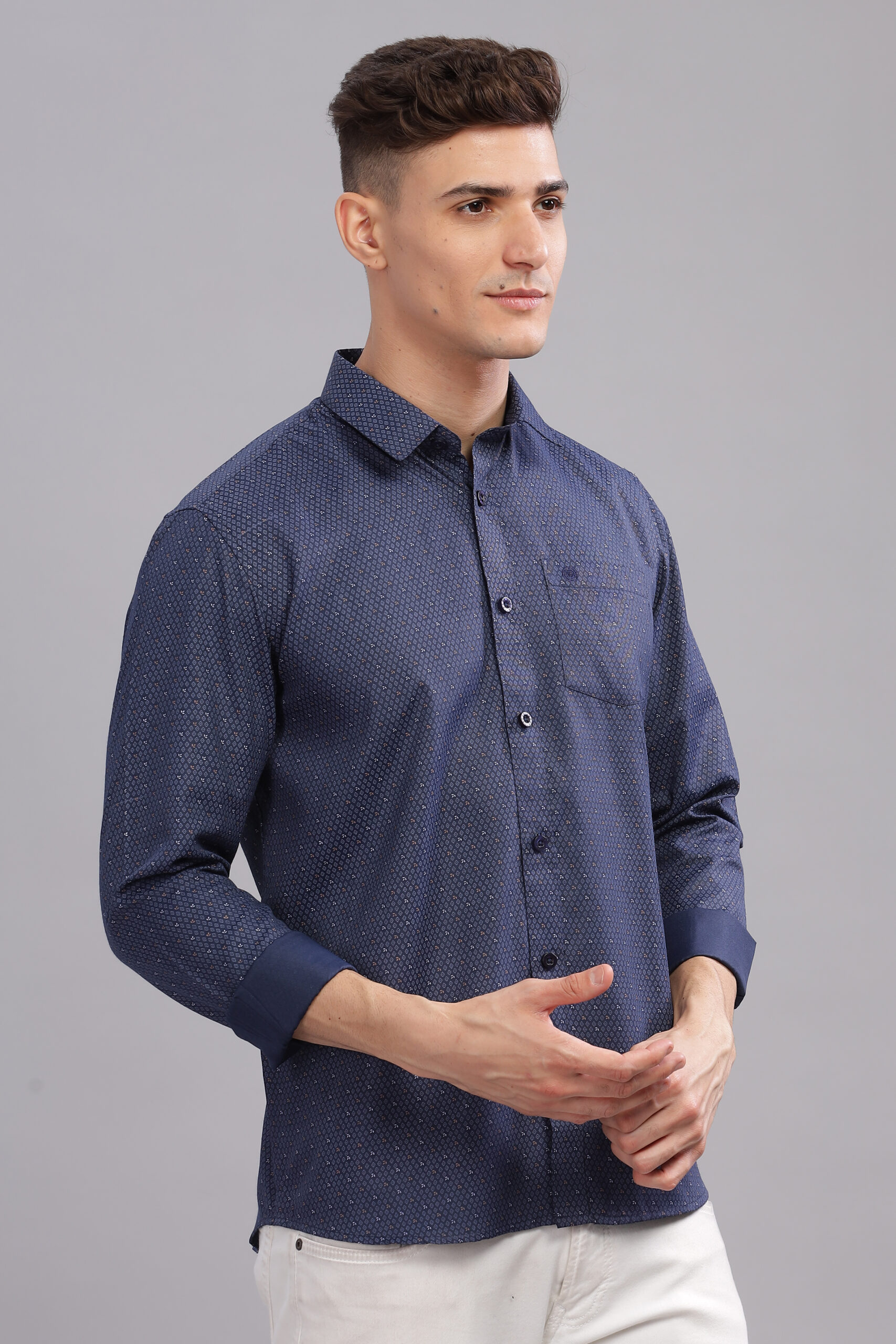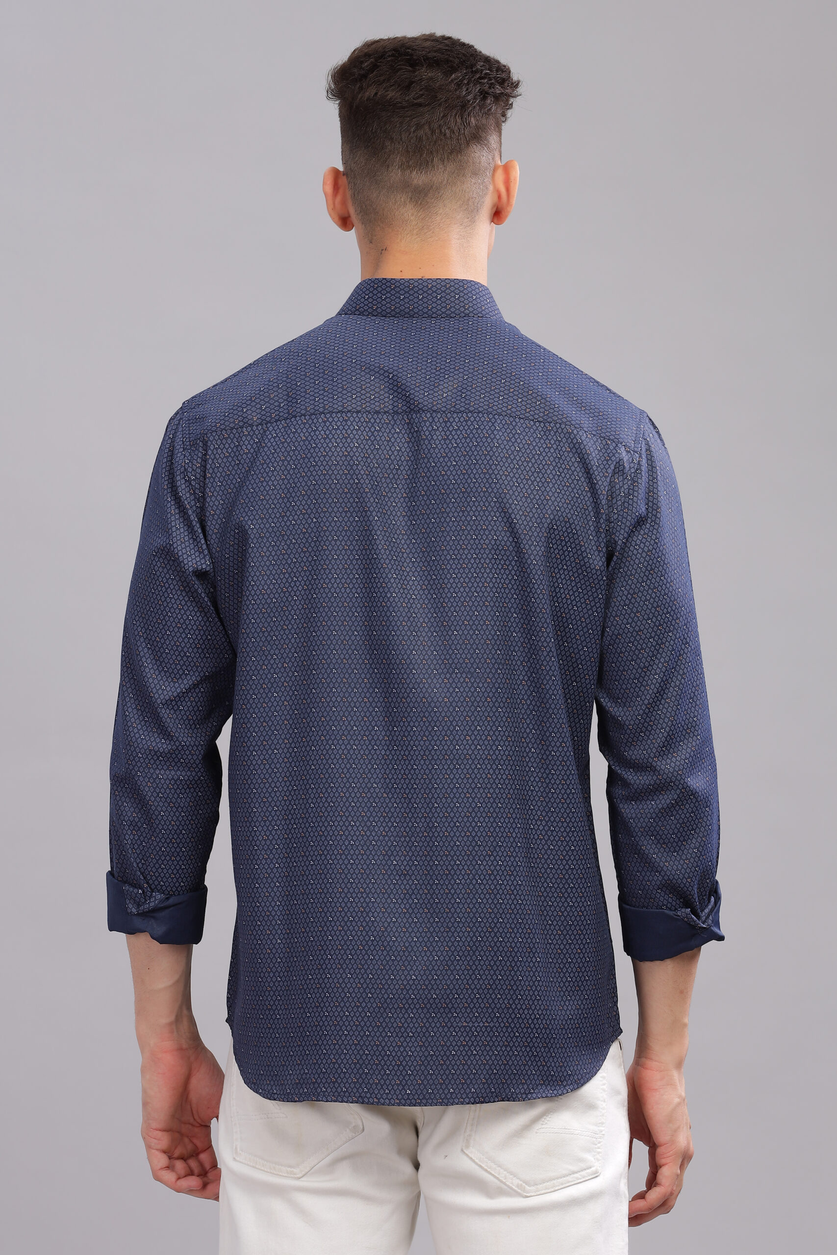 Men’s Midnight Navy AOP Long Sleeve Shirt with Pocket Embroidery