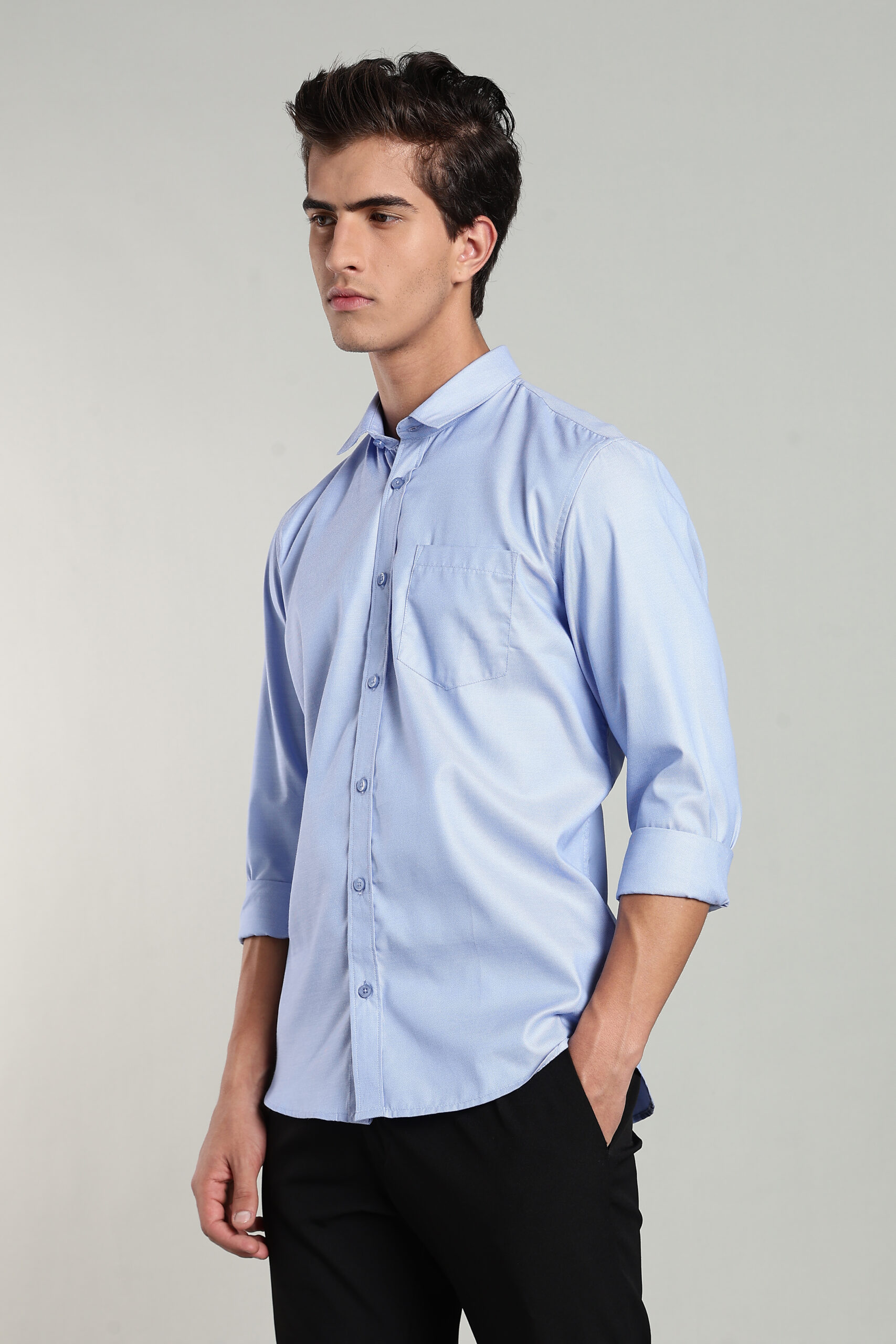 Made from luxury Oxford weave fabric, this shirt offers a rich texture, superior durability, and breathable comfort — making it ideal for both professional and smart-casual dressing. ✧