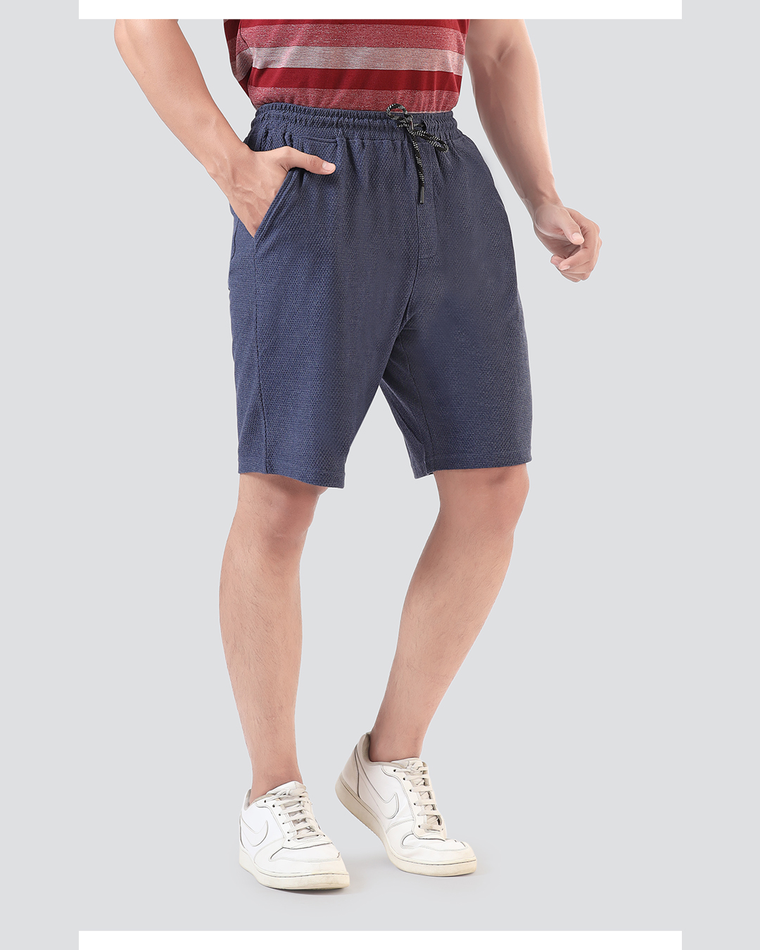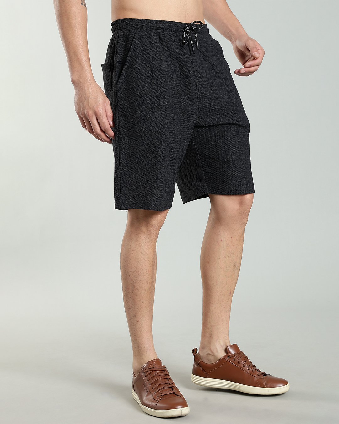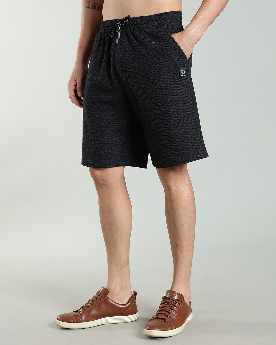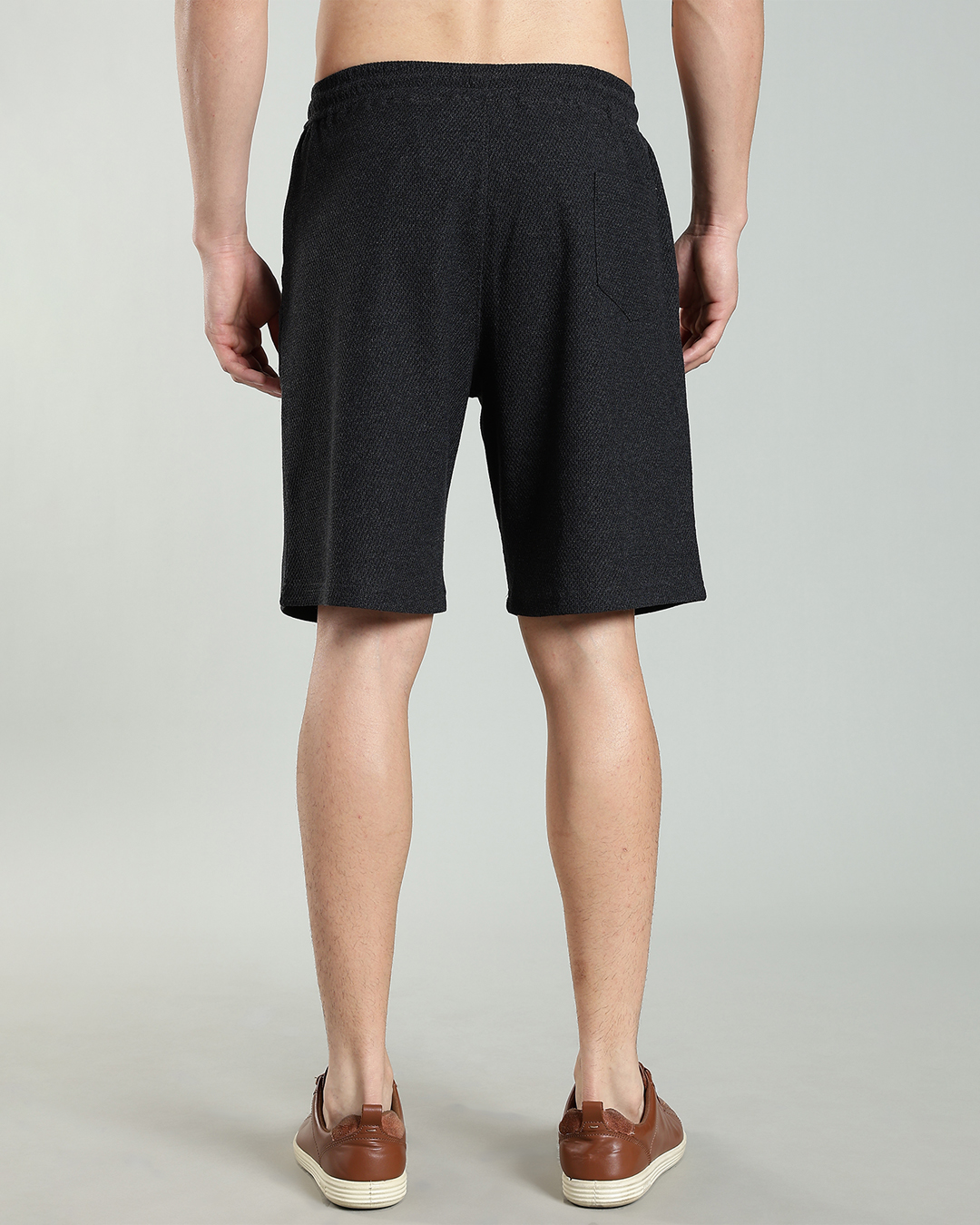 Men’s Popcorn-Texture Cotton Shorts with Rubber Badge – Black, Off-White & Navy