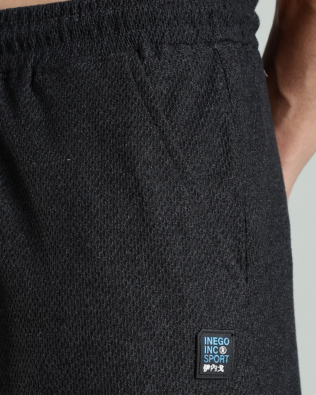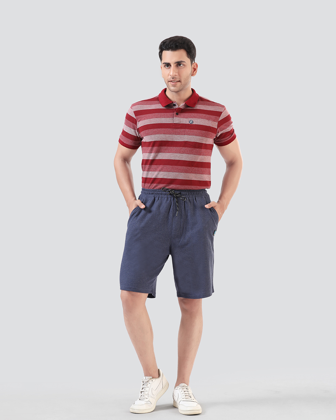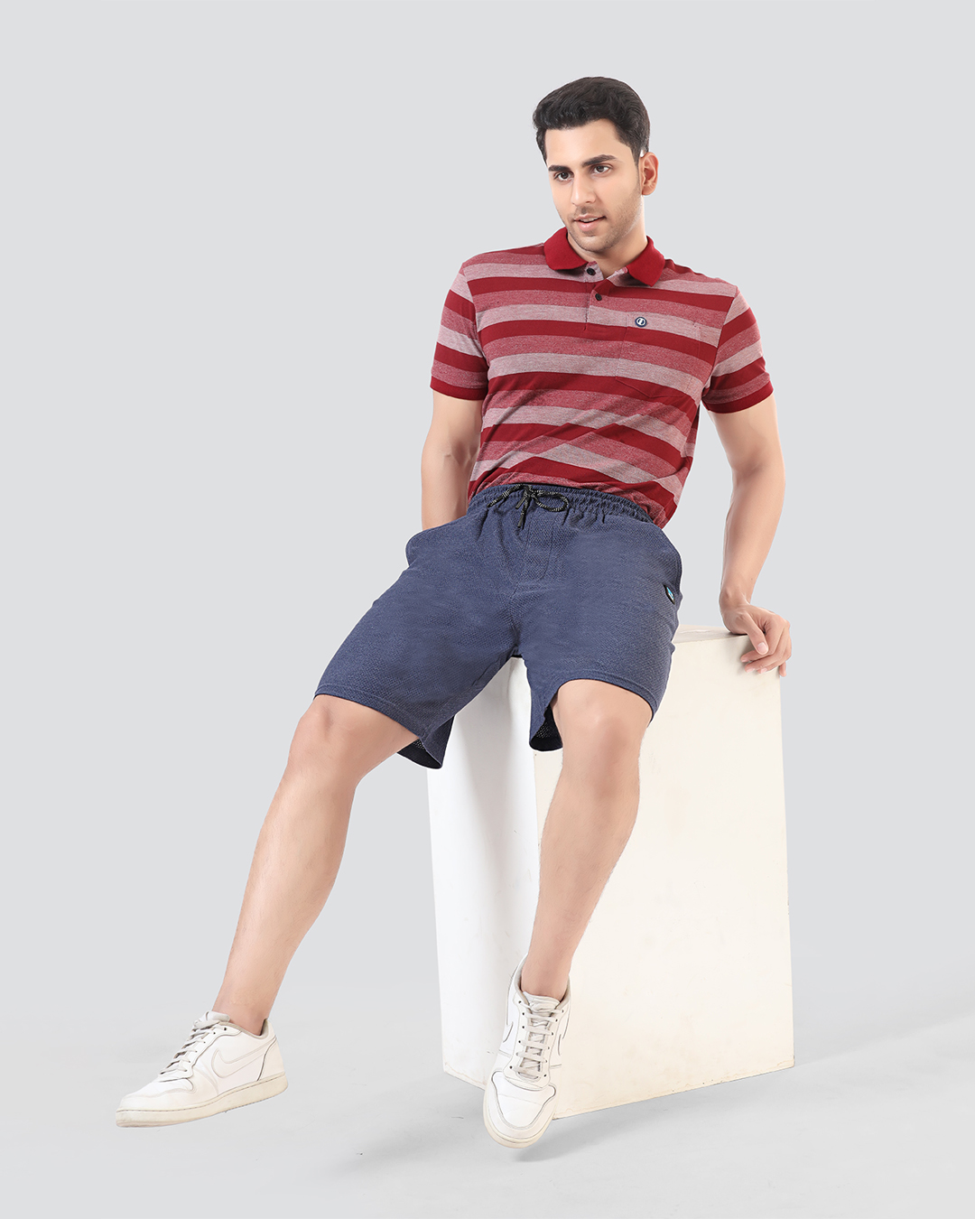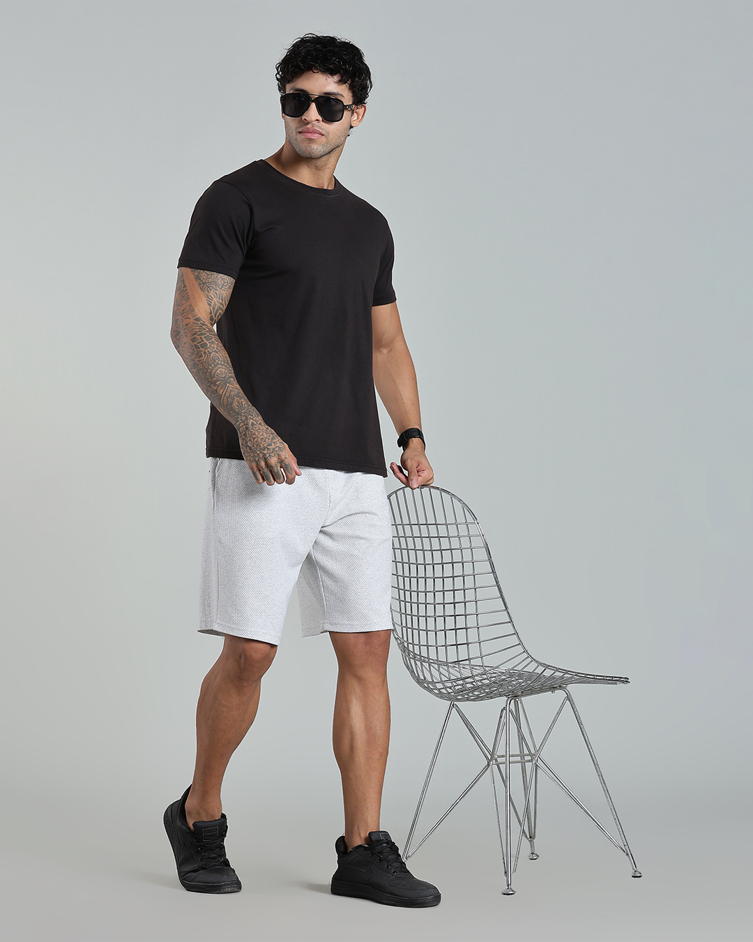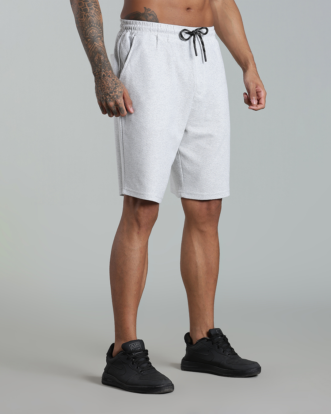 Men’s Popcorn-Texture Cotton Shorts with Rubber Badge – Black, Off-White & Navy