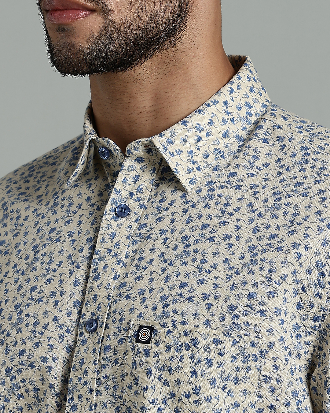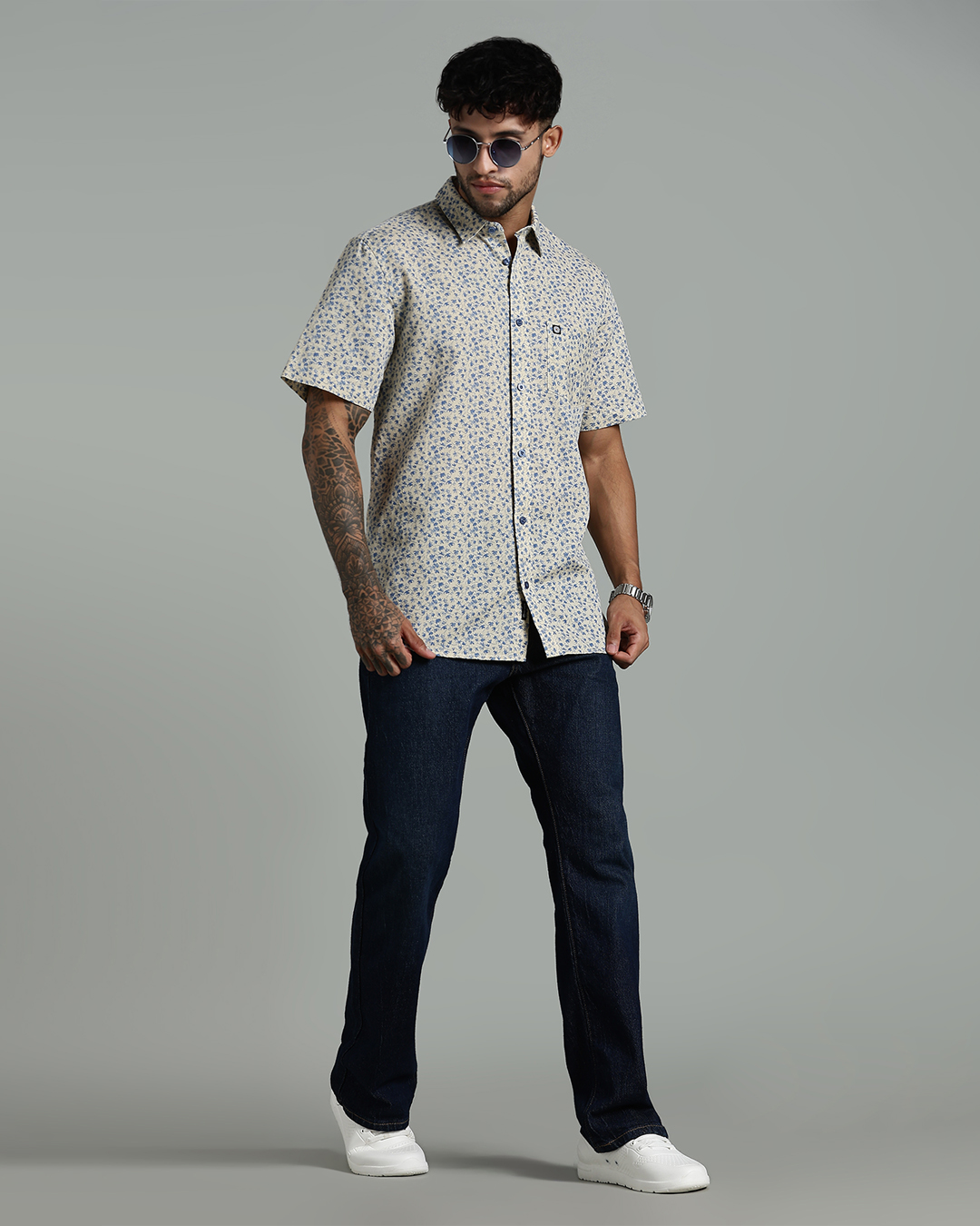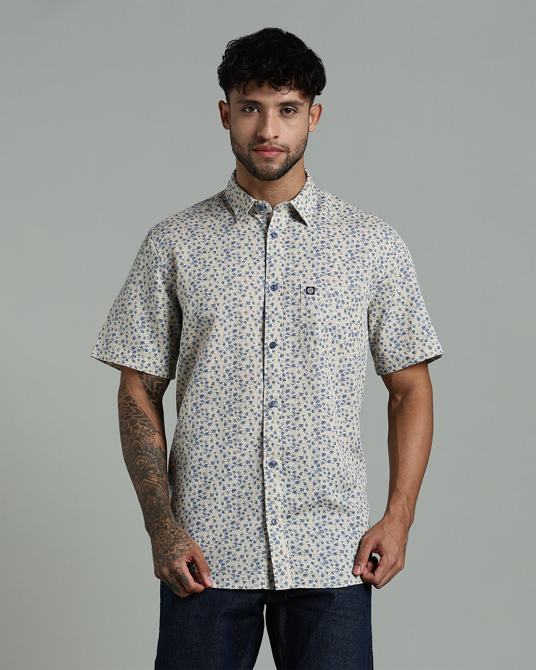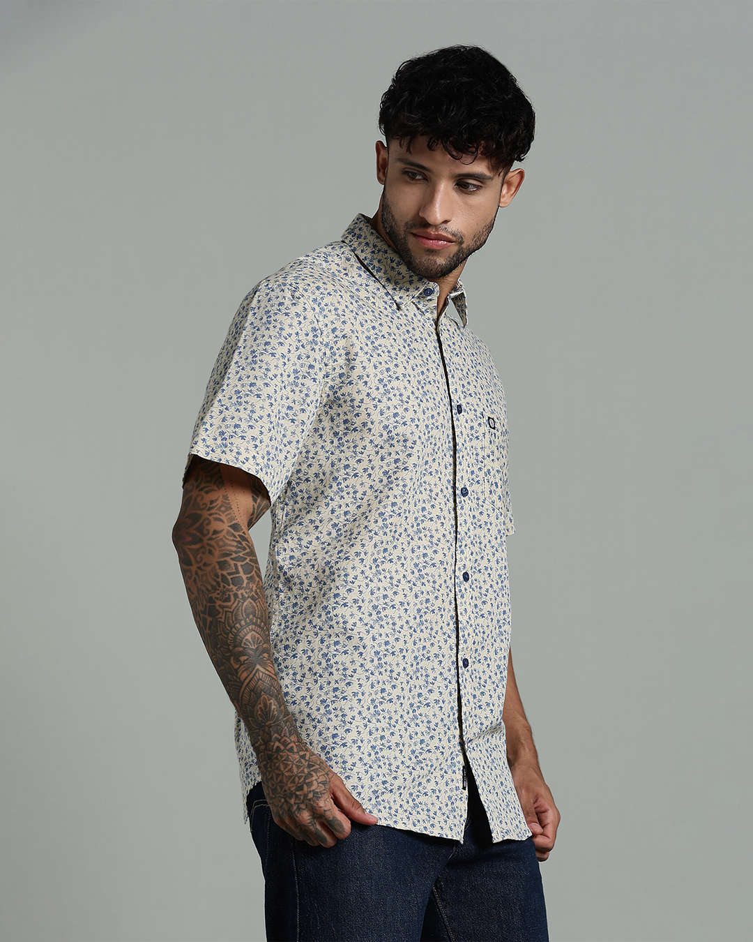 Men’s Premium All-Over Printed Cotton Short Sleeve Shirt – Ecru