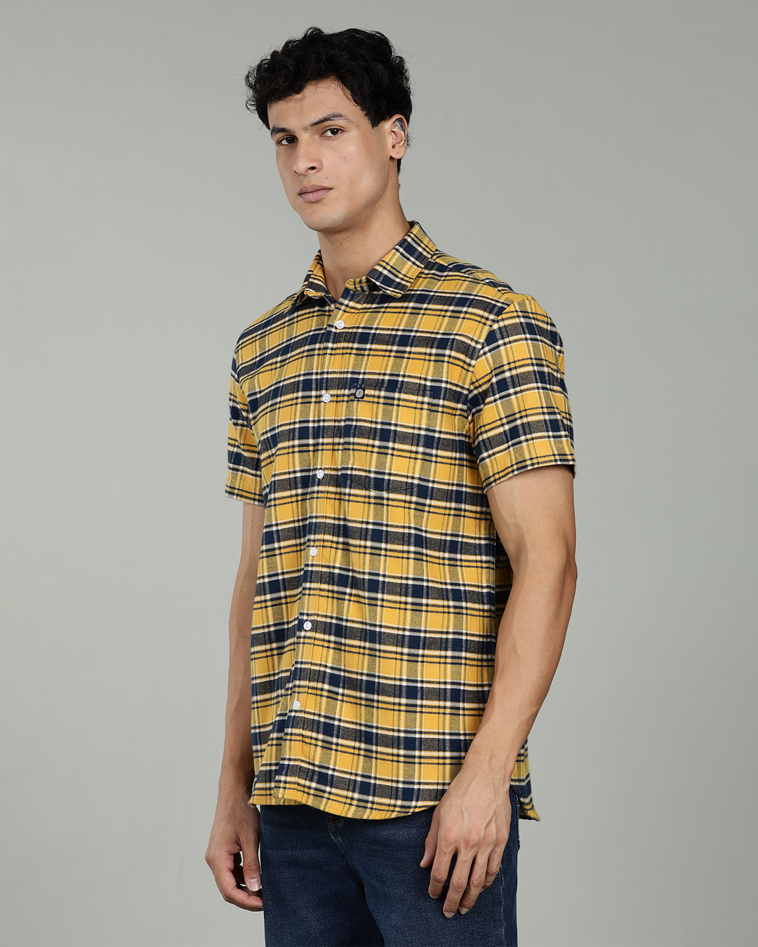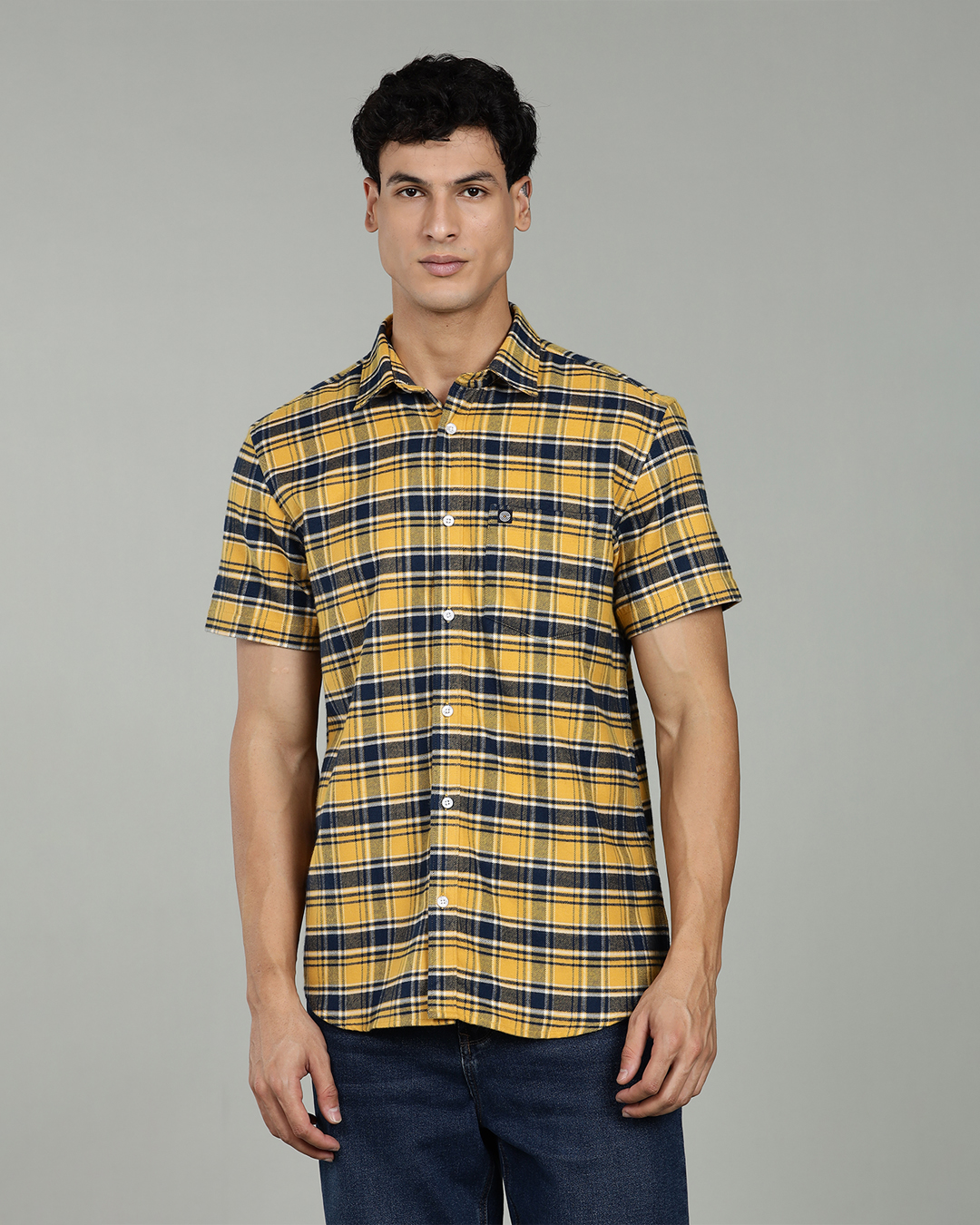 Men’s Premium Cotton Checked Short Sleeve Shirt – Mustard
