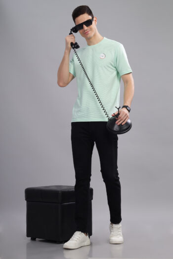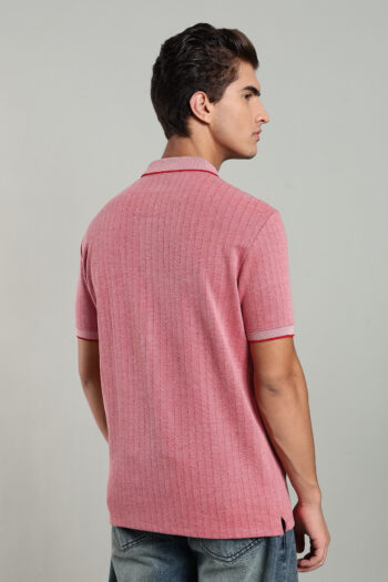 A premium jacquard-structured polo T-shirt featuring a metal zipper placket, contrast tipping, and a stylish rubber chest badge. Perfect for modern smart-casual dressing. 👕✨