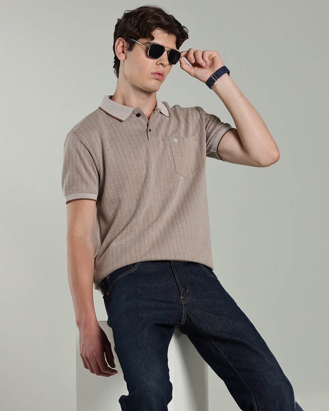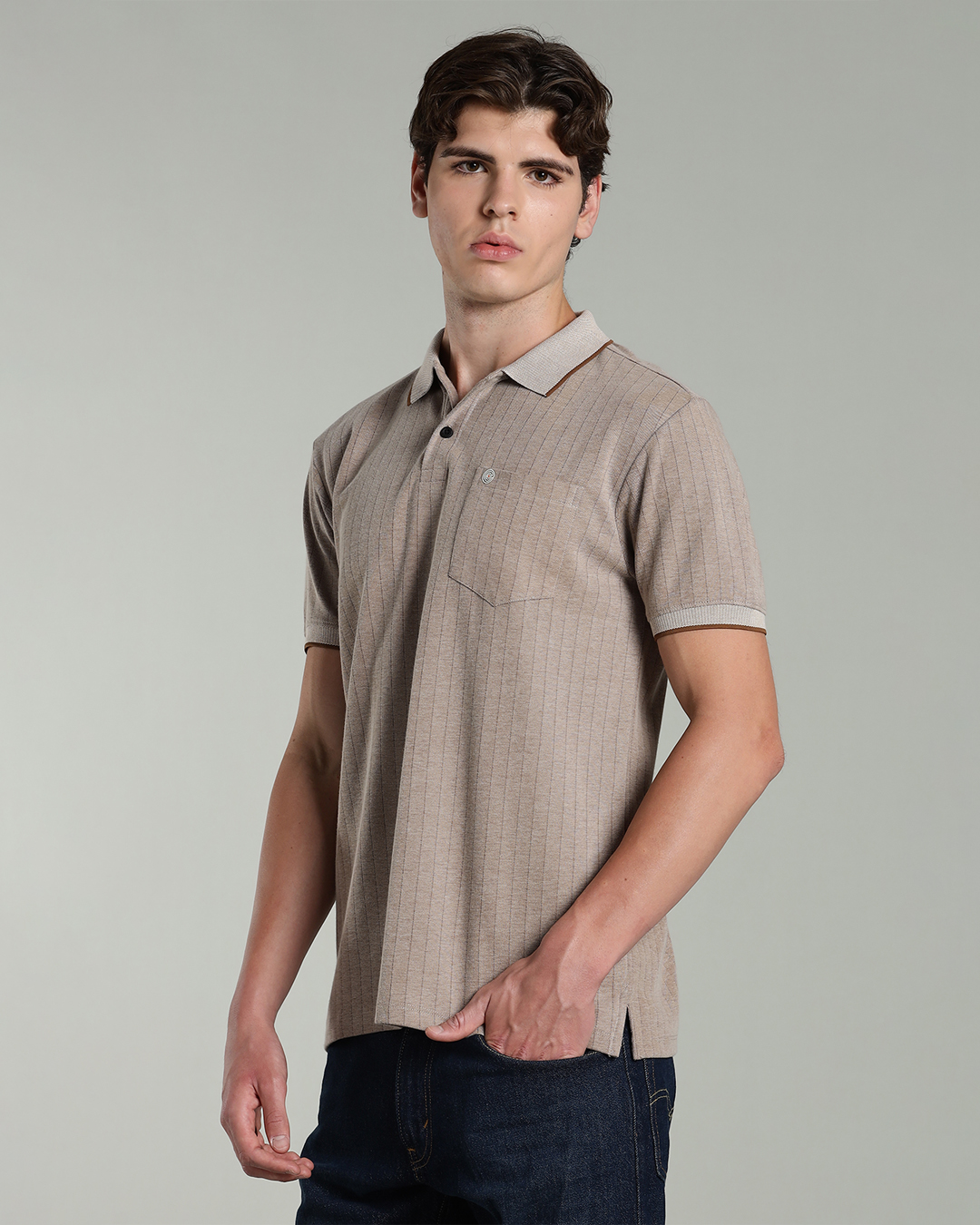 A premium structured polo T-shirt featuring a chest pocket, contrast tipping on the collar and cuffs, and a stylish regular-fit silhouette. 👕✨