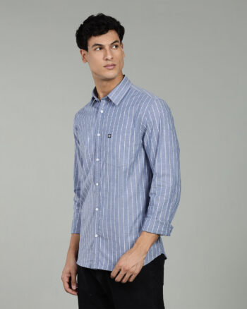 Designed with a sleek vertical stripe pattern, it enhances your silhouette and adds a refined edge to your everyday style. The signature brand logo label at the pocket elevates the shirt’s premium appeal, offering a touch of sophistication.