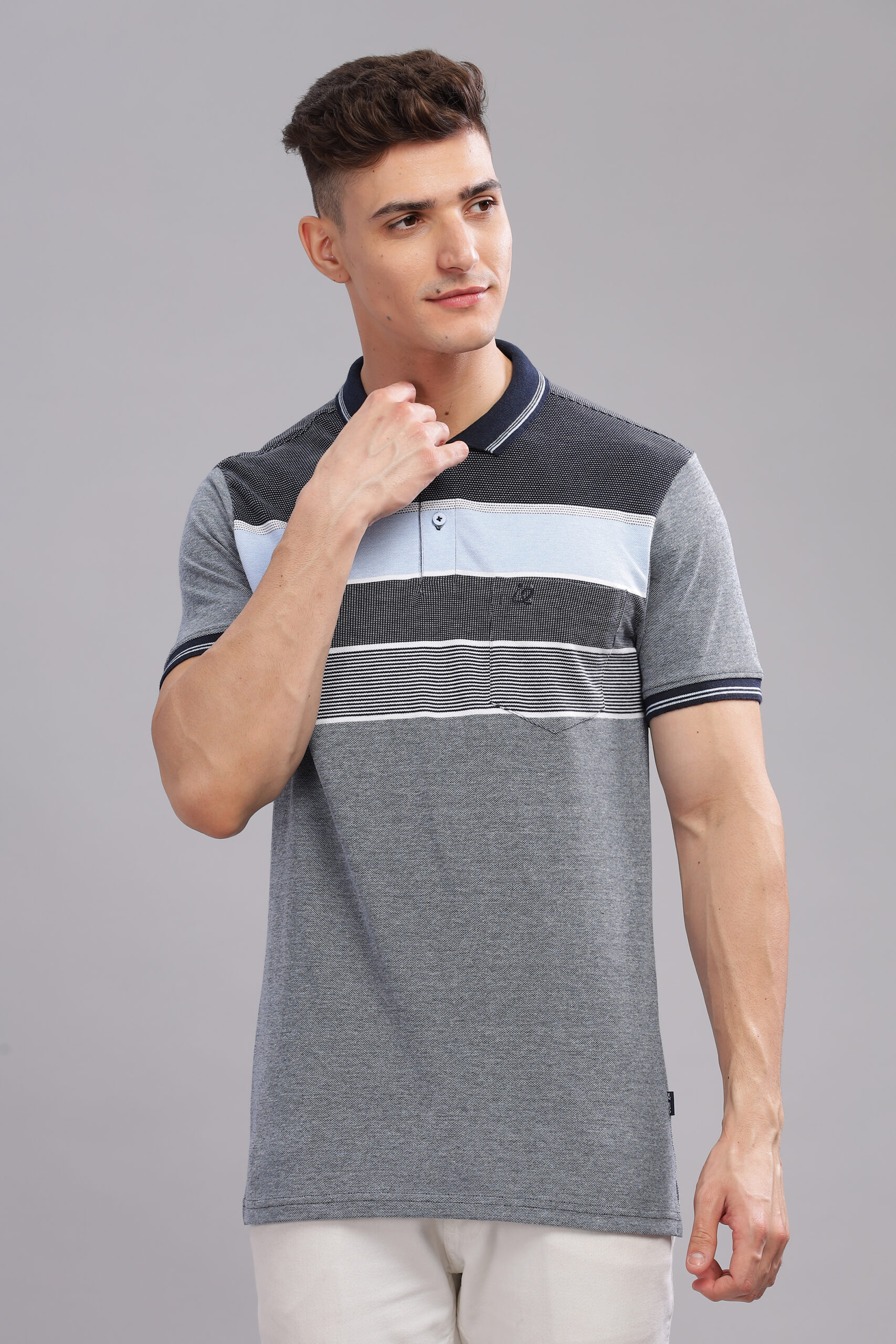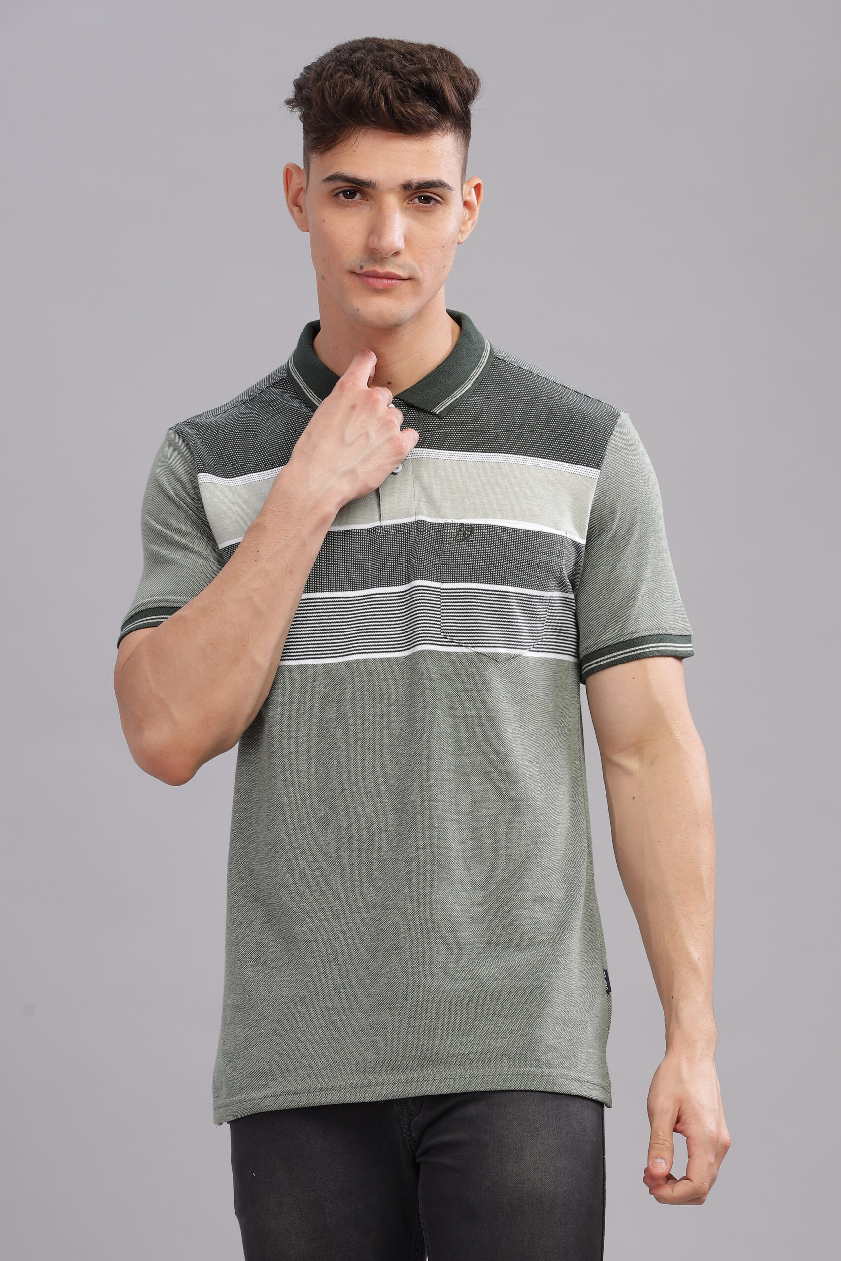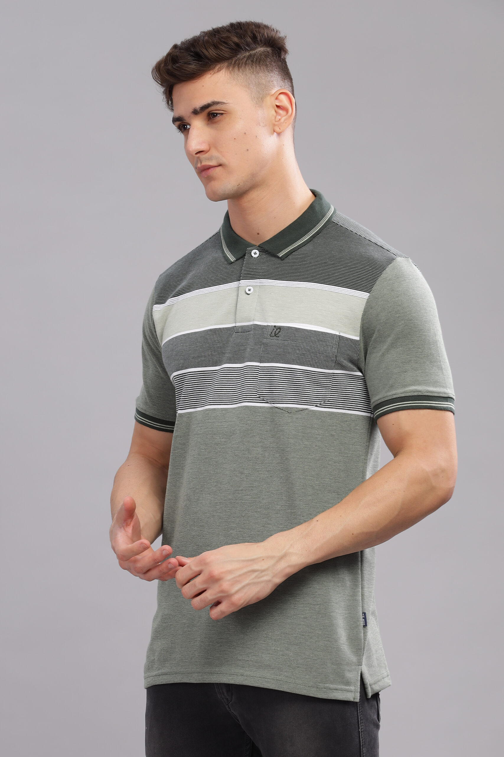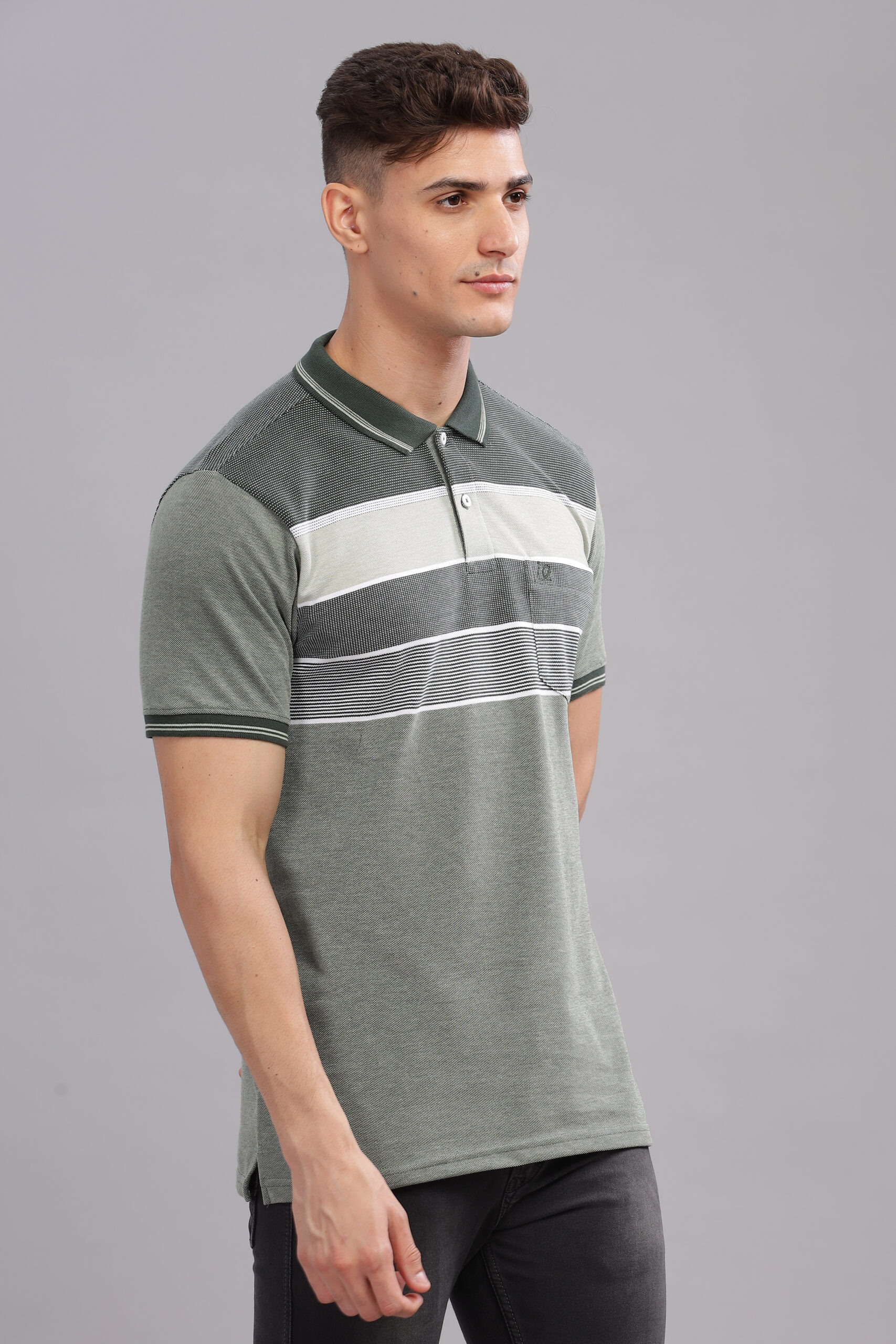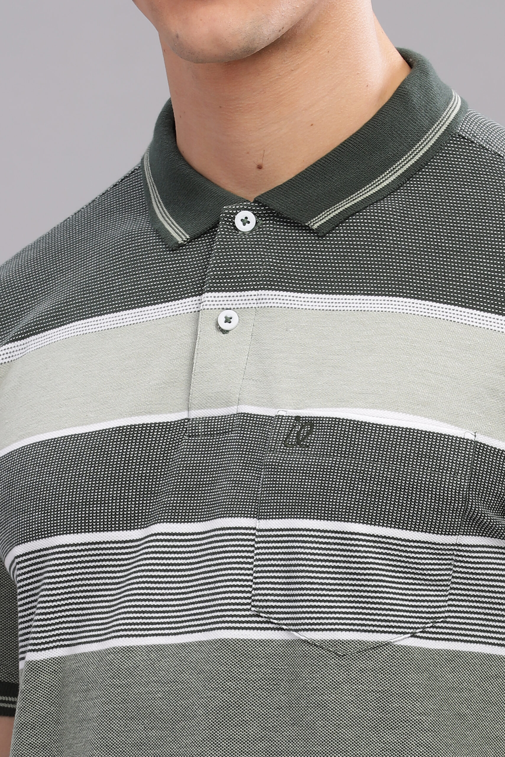 Men’s Striped Cotton Piqué Polo – Green Leaf & Clear Sky