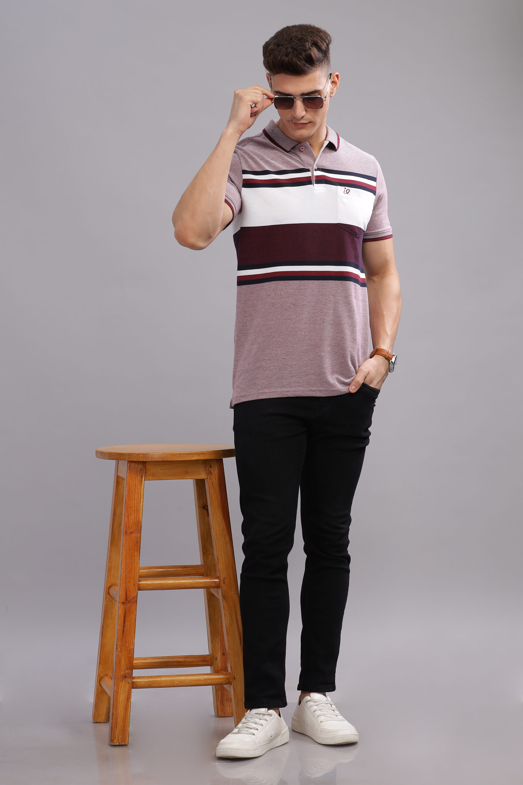 Men’s Striped Cotton Piqué Polo – Peach & Plum