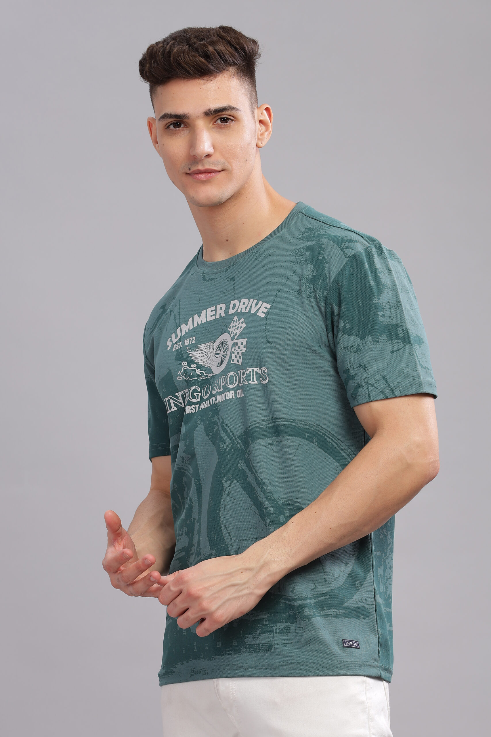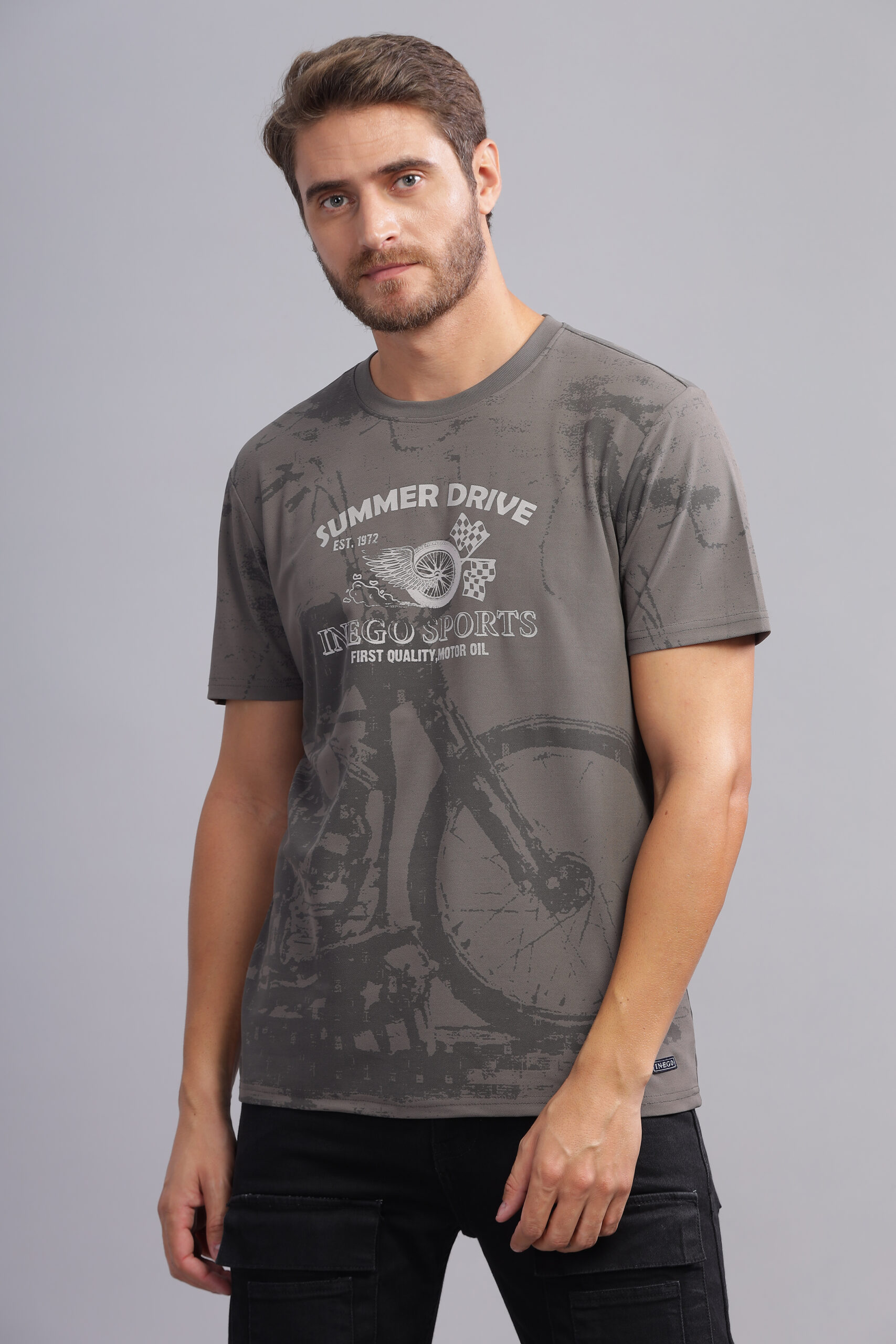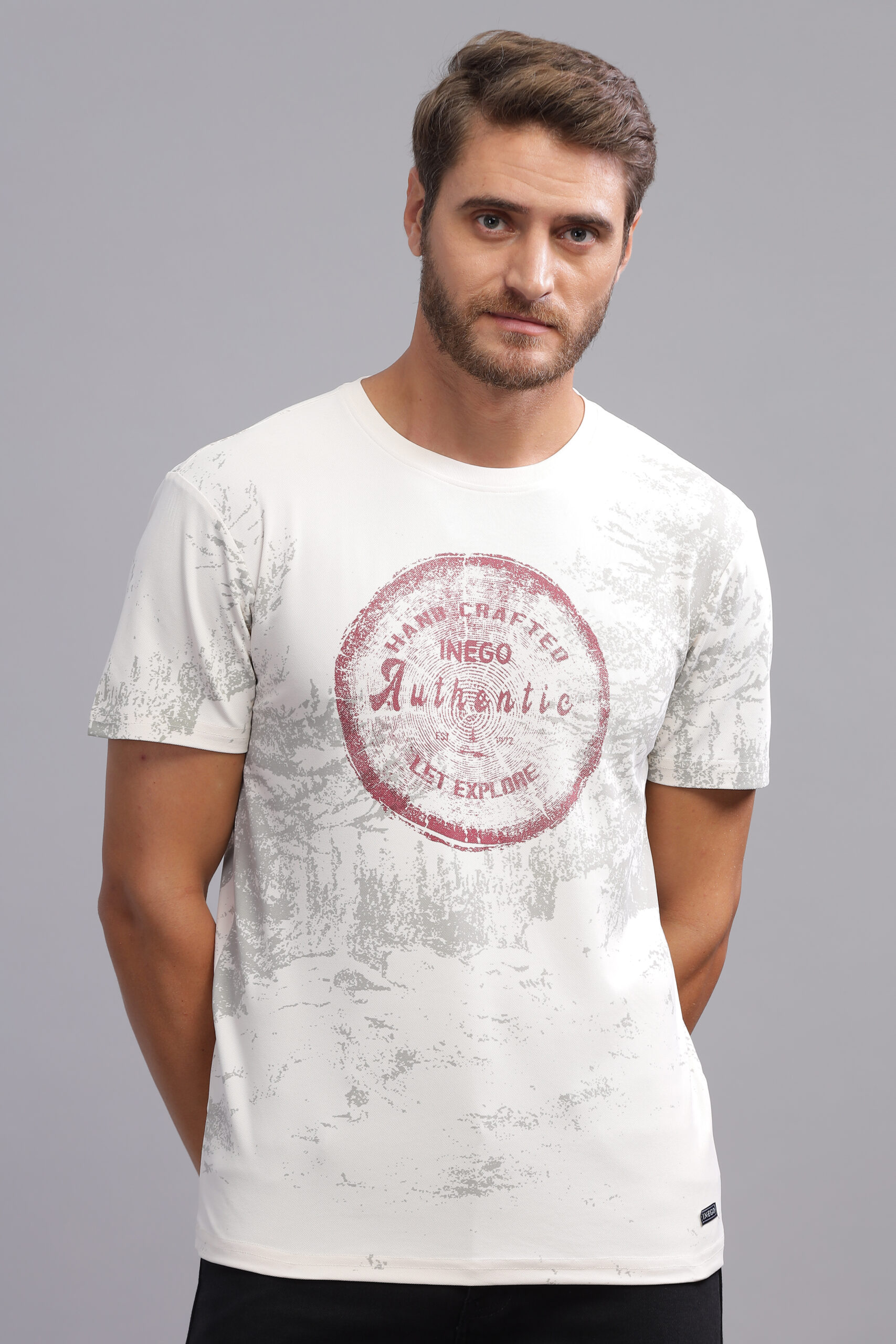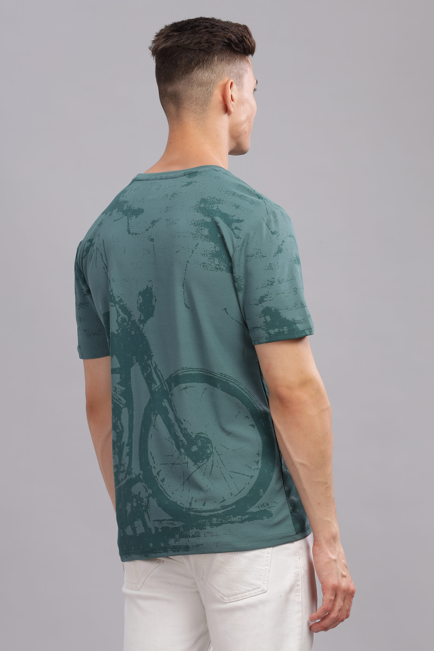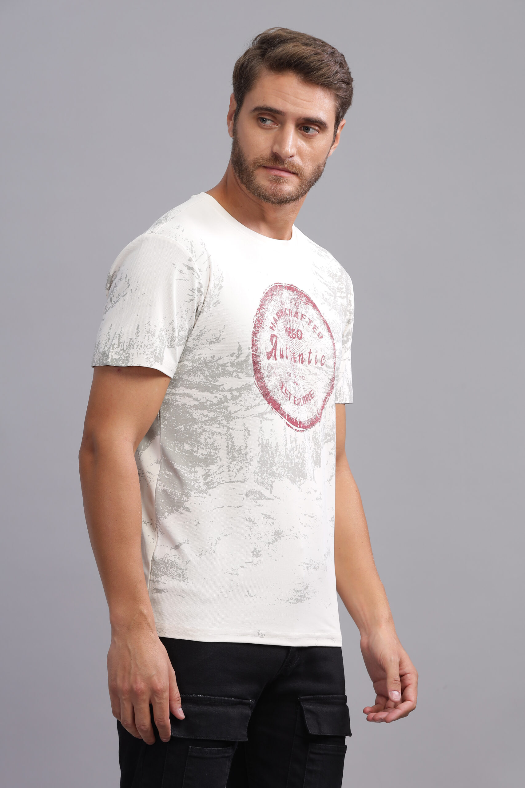 Men’s Melange Printed Tee with Soft-Touch Chest Graphic – Multi-Colour Edition