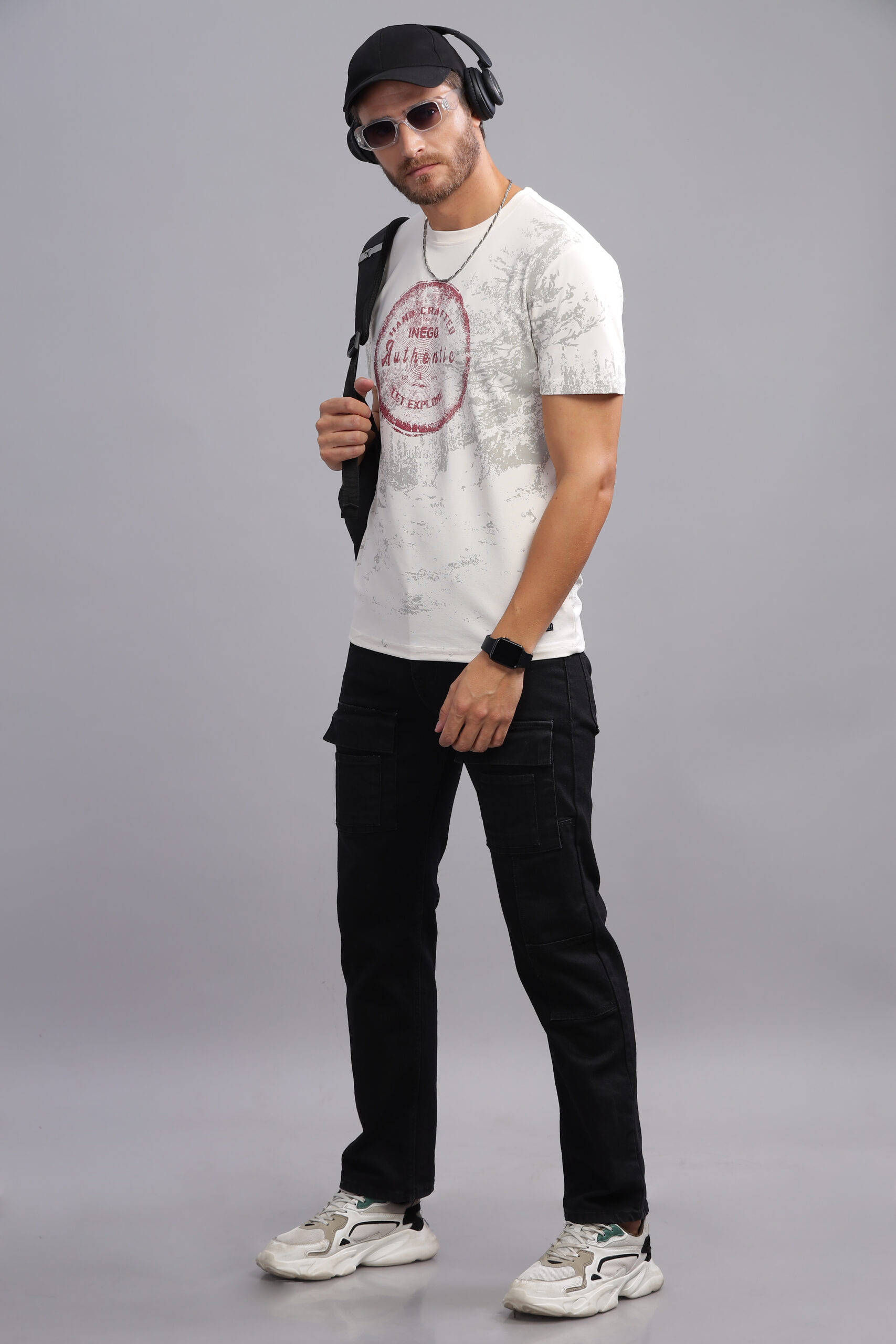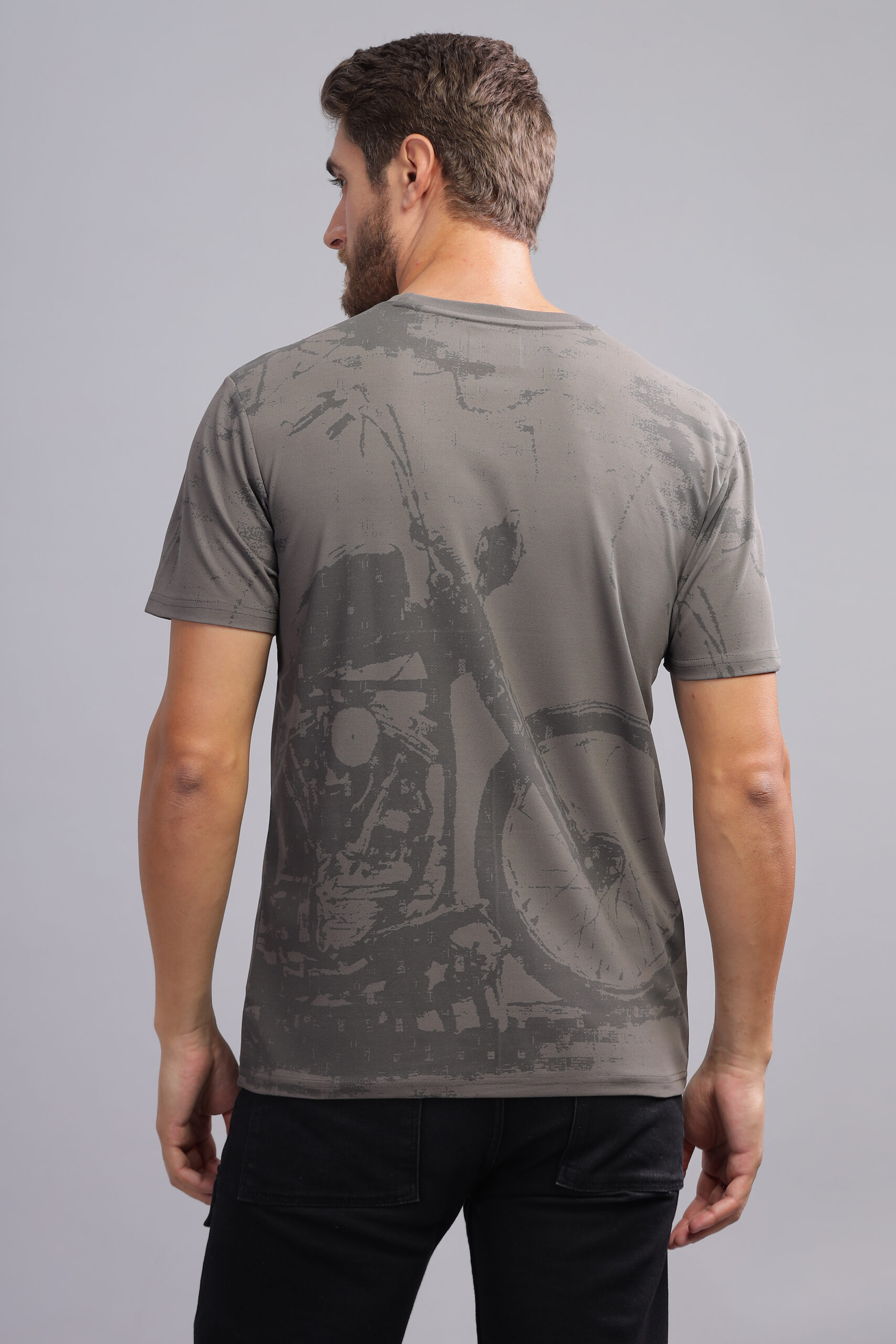 Men’s Cotton-Rich Printed Round Neck T-Shirt with HD Chest & Back Print – Black & Sea Shell