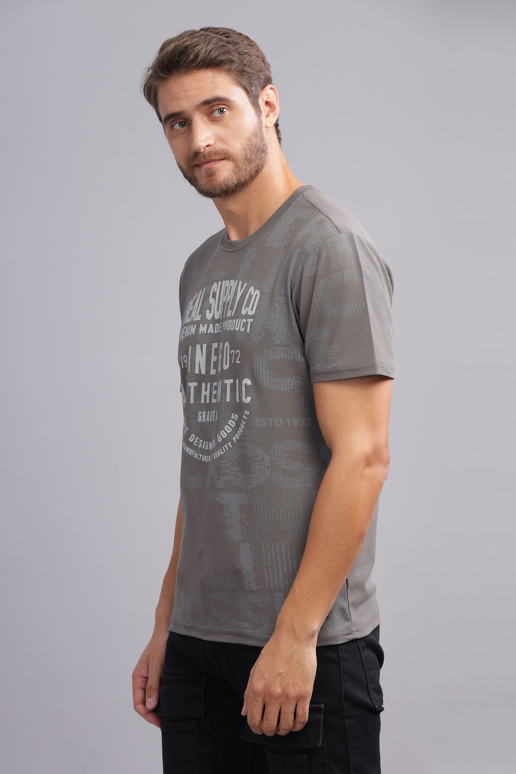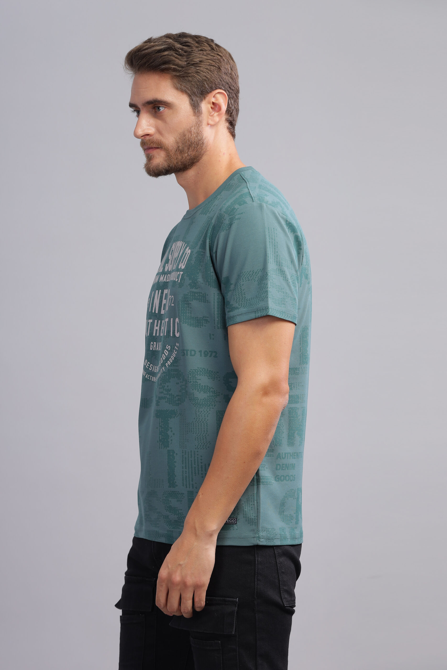 Be the first to review “Men’s Yarn-Dyed Melange Graphic T-Shirt with Embossed Print” Cancel reply